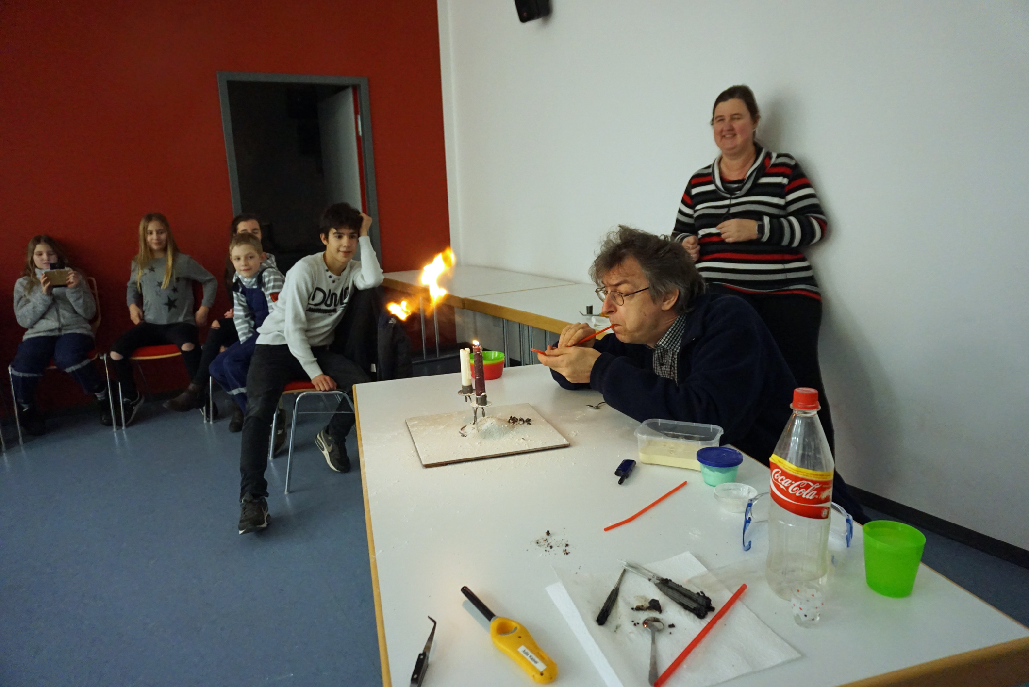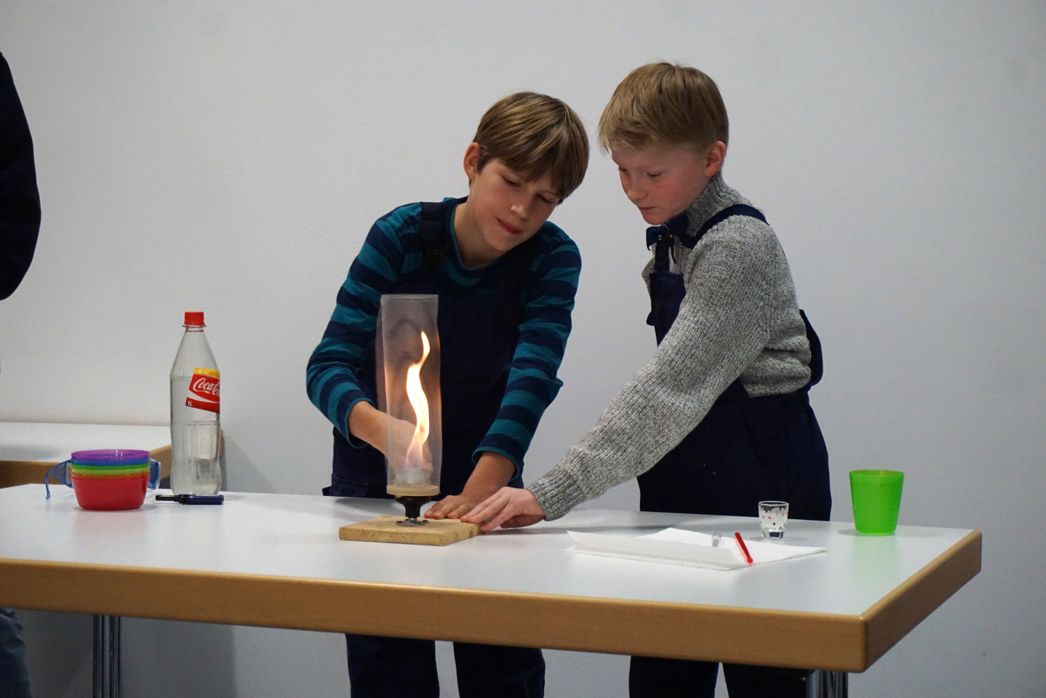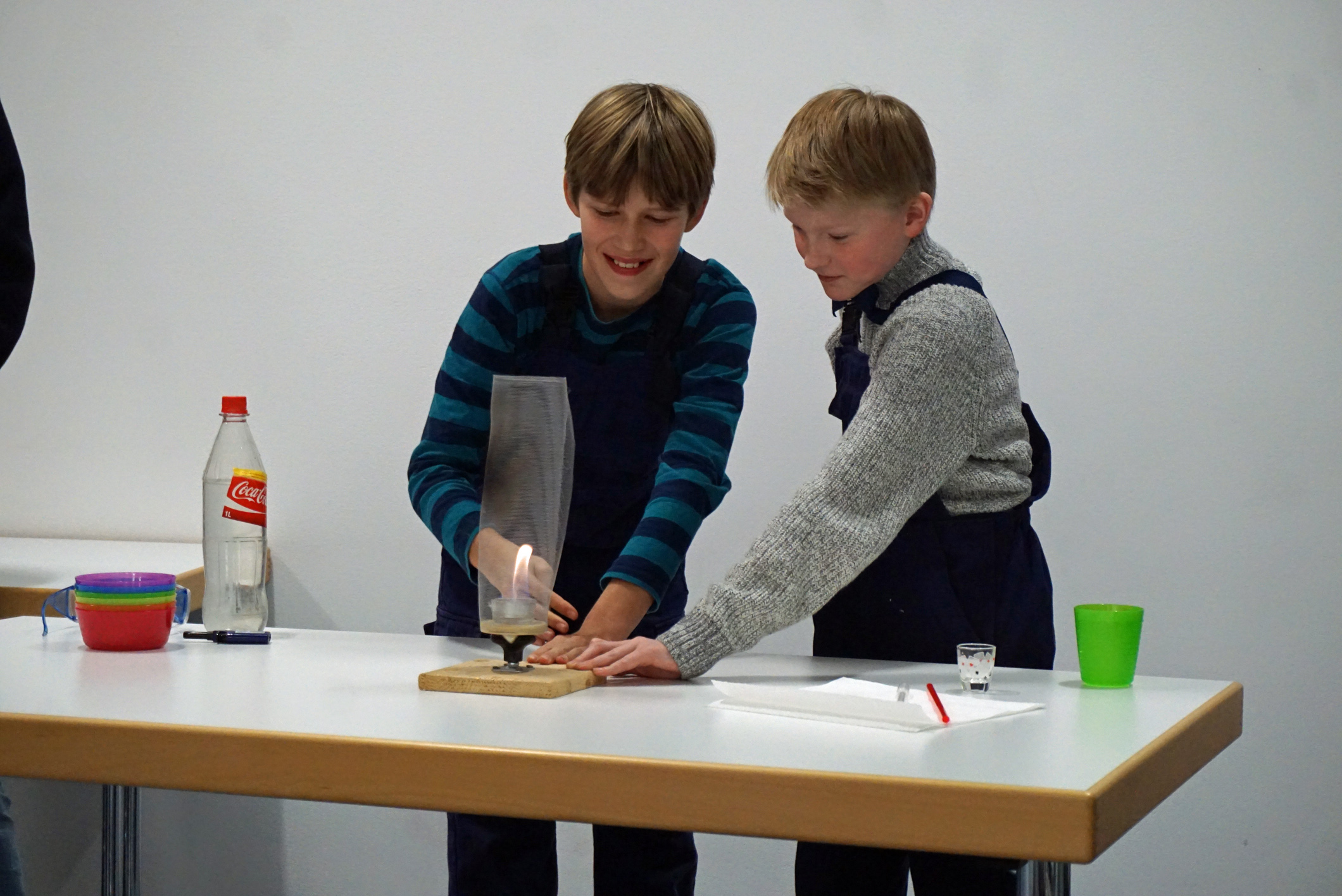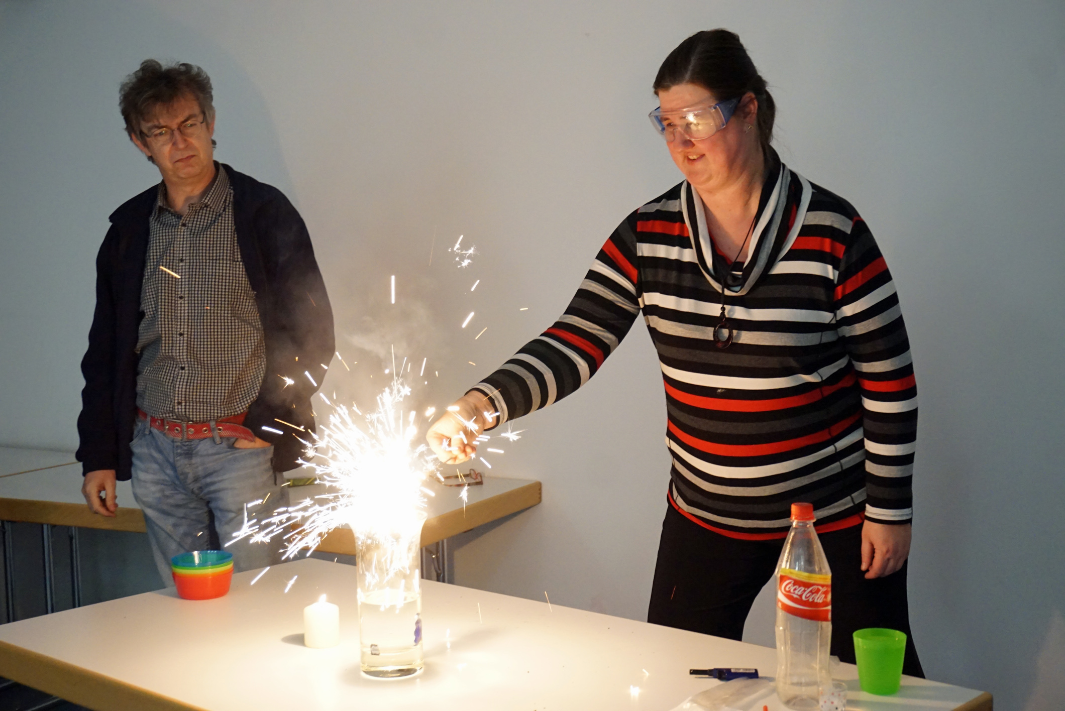 Die Jugendfeuerwehr widmete sich bei diesem Treffen ganz dem Experimentieren. Natürlich sollte alles irgendwie mit Feuer zu tun haben, und so wurden schnell verschiedenste Flammen und Feuerbälle gezaubert. Die Experimente um brennende Geldscheine, Wunderkerzen, Mehlstaub- und Fettexplosionen und CO2 waren aber auch immer lehrreich, denn schließlich muss man sich bei der Feuerwehr mit Feuer auskennen und auch wissen, mit welchen Löschmitteln man zum Erfolg kommen kann. Dass man mit Wunderkerzen vorsichtig sein muss, man in Backstuben keine Kerze anzünden sollte und die Friteuse bloß nicht mit Wasser gelöscht werden darf, ist auf jeden Fall klar geworden.