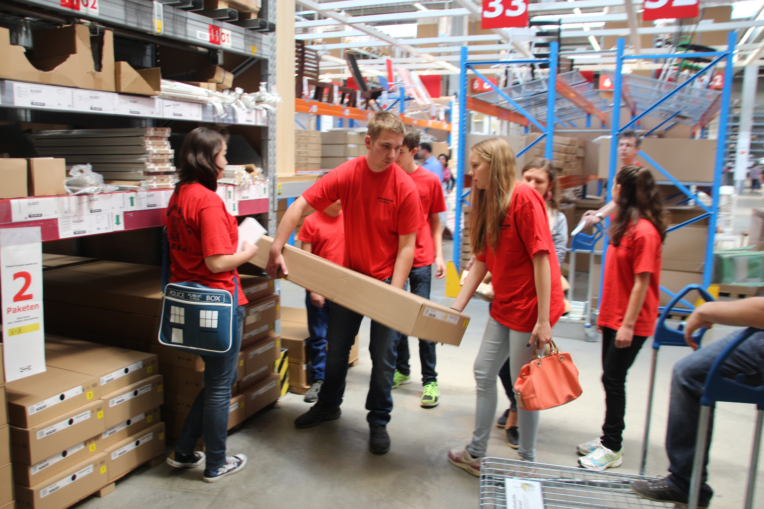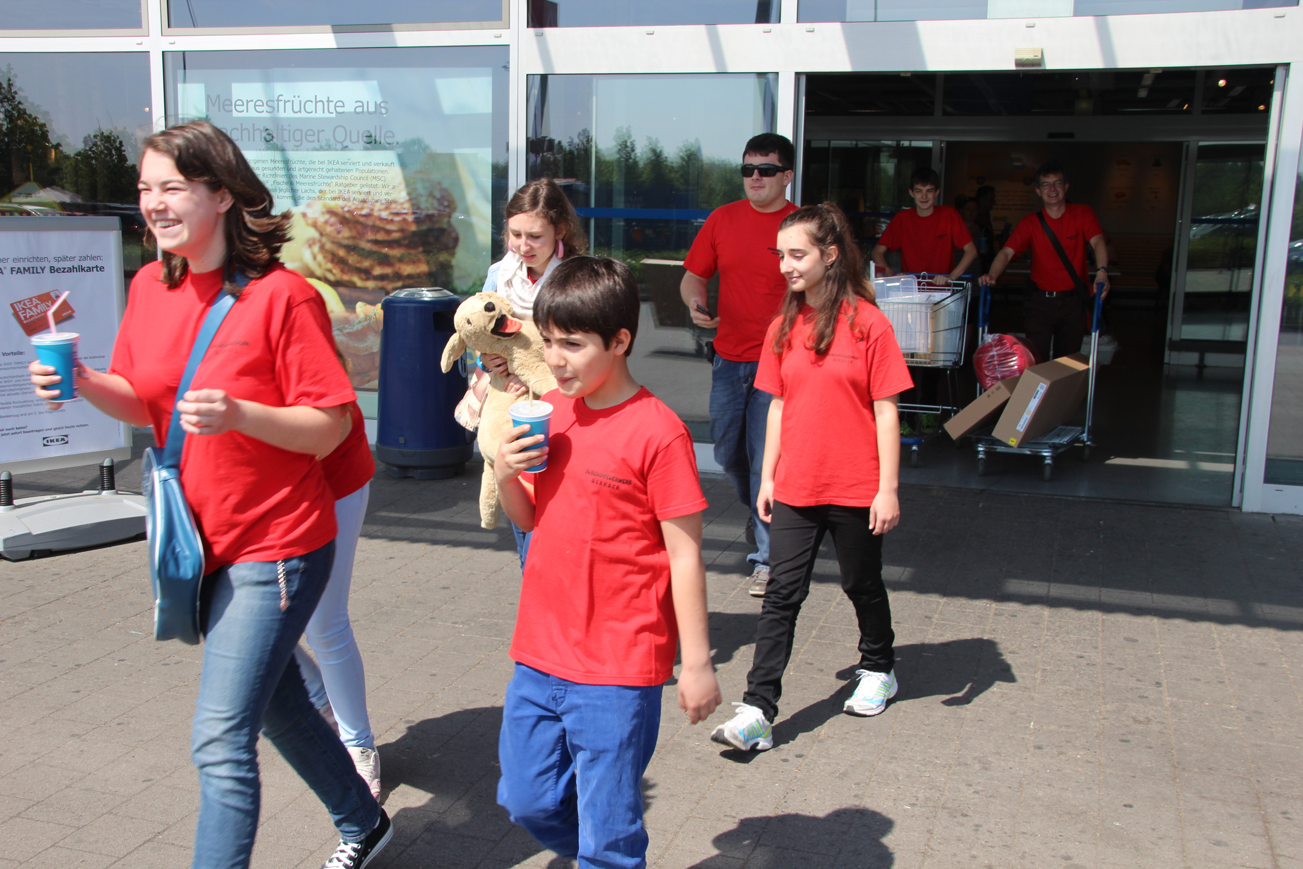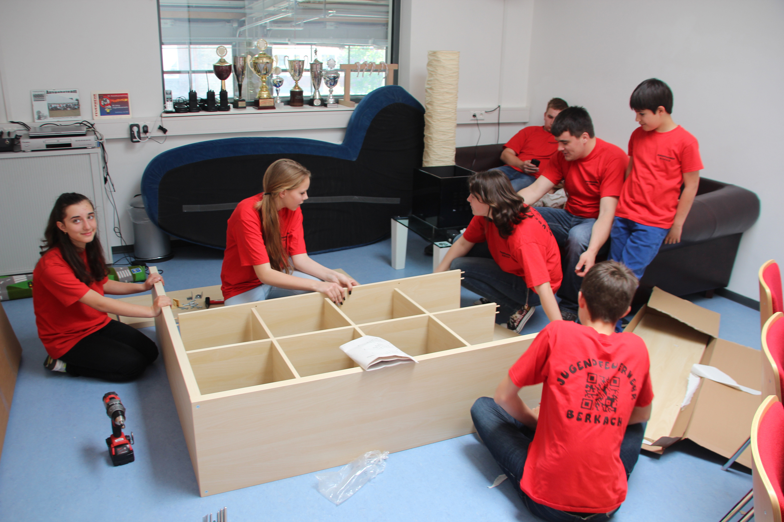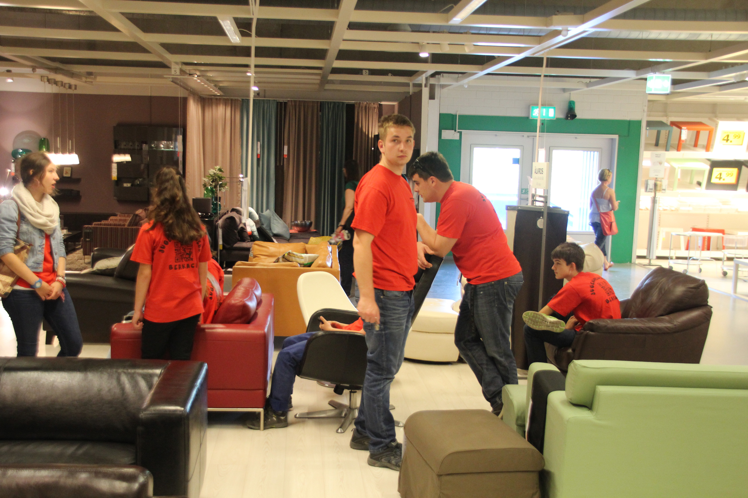 Am 25.4.2014 waren einige Jugendliche aus Berkach mit ihren Betreuern bei IKEA. Dort sollten neue Möbel für den Jugendraum gekauft werden. Da der Einkauf recht gut vorbereitet war, stand die Gruppe schon recht bald mit einem Regal, einem roten Sofa und einer Stehlampe an der Kasse. Natürlich ging es erst nach Hause, nachdem auch jeder noch einen Hot Dog bekommen hatte ... Im Jugendraum stand dann noch eine Menge Arbeit an, bis alles aufgebaut war. Aber da alle mit anpackten, ging es dann doch recht schnell und konnte sofort eingeweiht werden.