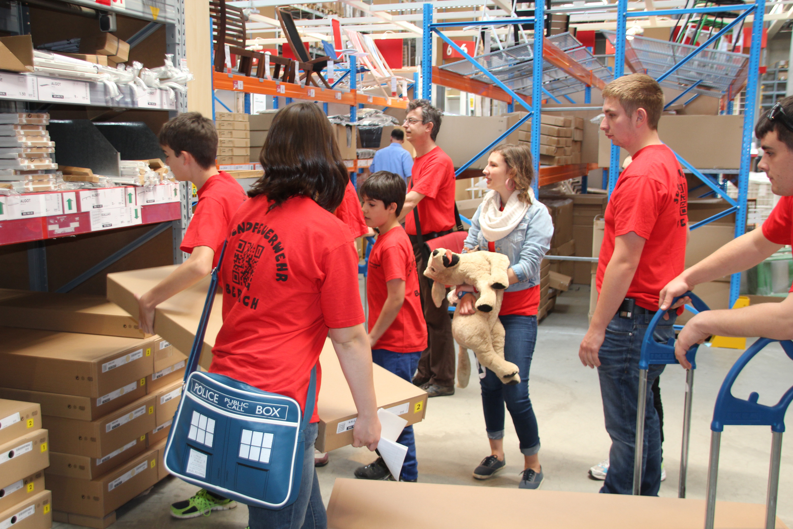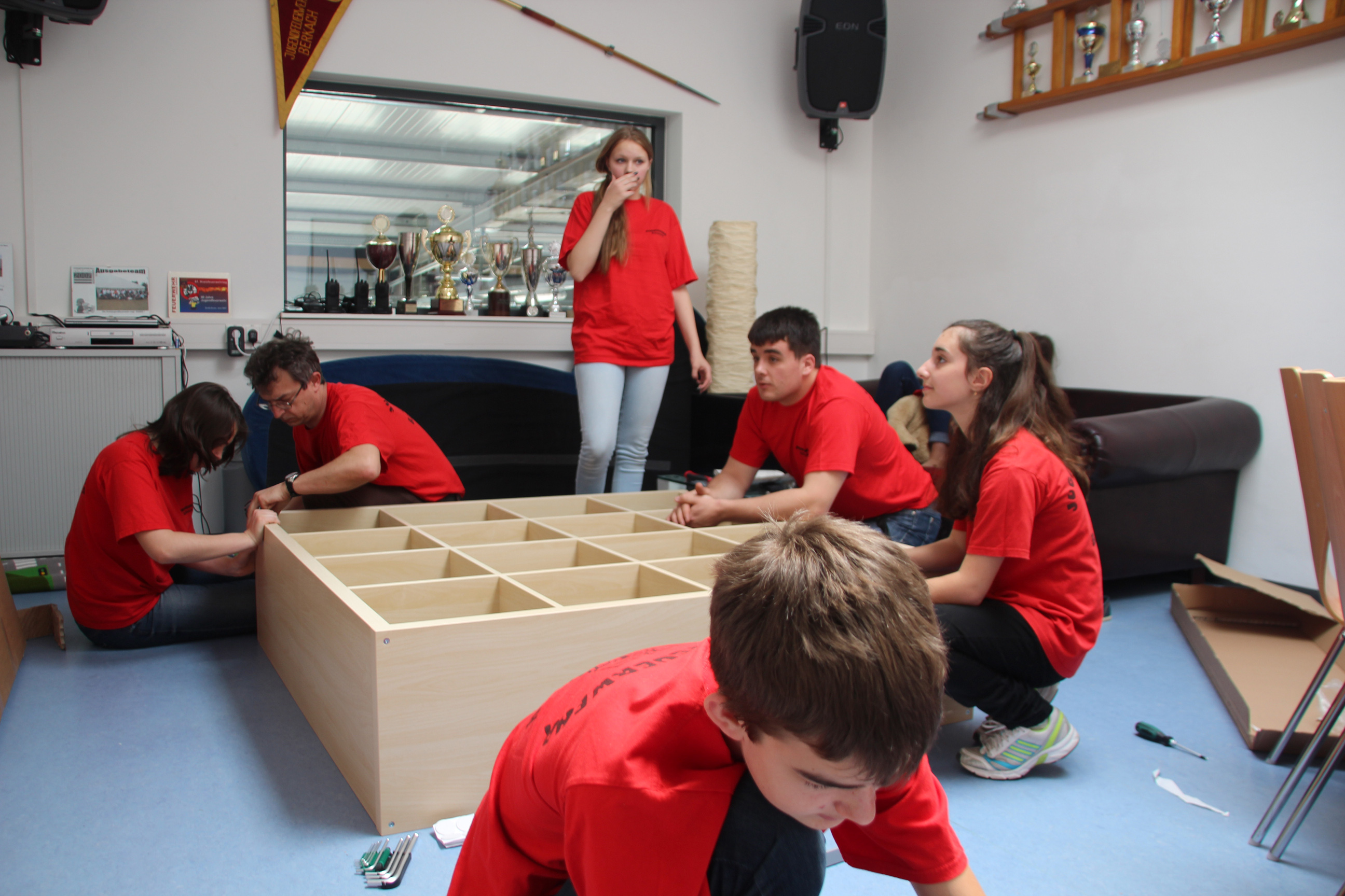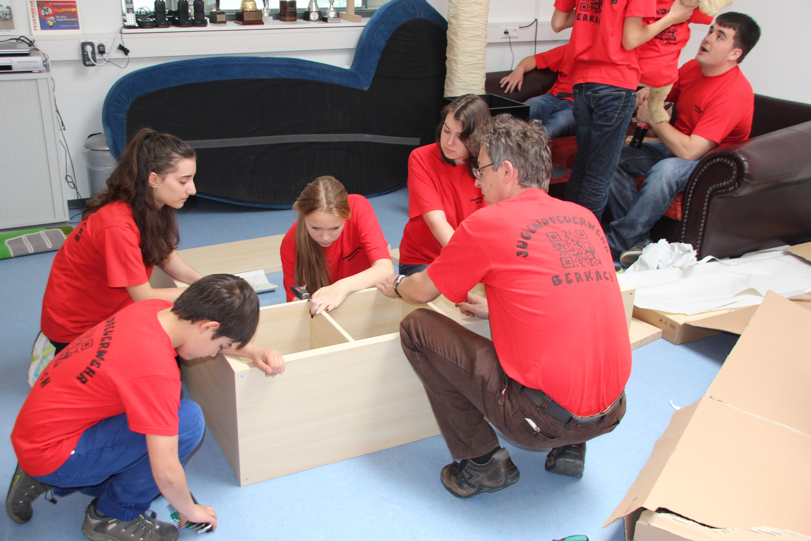 Am 25.4.2014 waren einige Jugendliche aus Berkach mit ihren Betreuern bei IKEA. Dort sollten neue Möbel für den Jugendraum gekauft werden. Da der Einkauf recht gut vorbereitet war, stand die Gruppe schon recht bald mit einem Regal, einem roten Sofa und einer Stehlampe an der Kasse. Natürlich ging es erst nach Hause, nachdem auch jeder noch einen Hot Dog bekommen hatte ... Im Jugendraum stand dann noch eine Menge Arbeit an, bis alles aufgebaut war. Aber da alle mit anpackten, ging es dann doch recht schnell und konnte sofort eingeweiht werden.