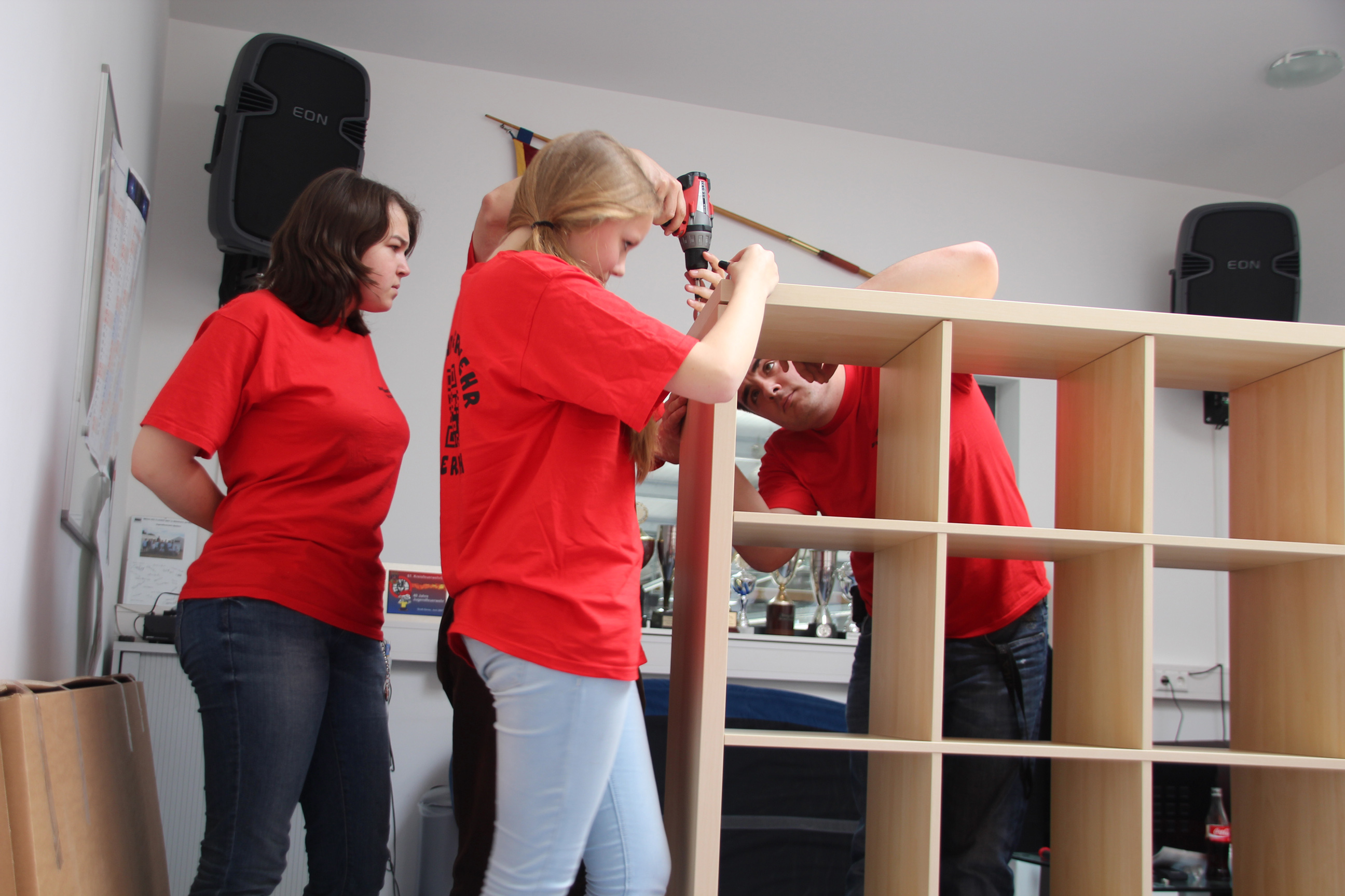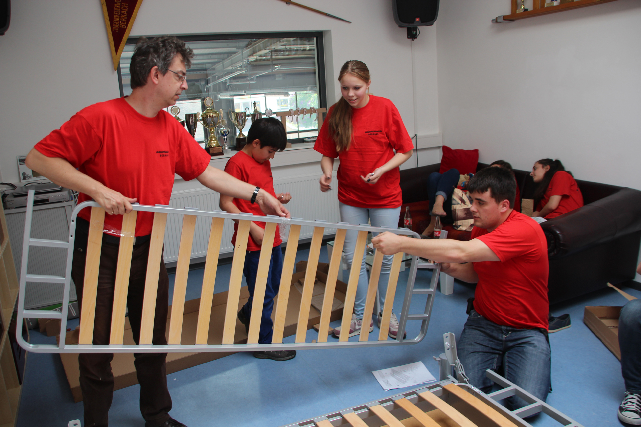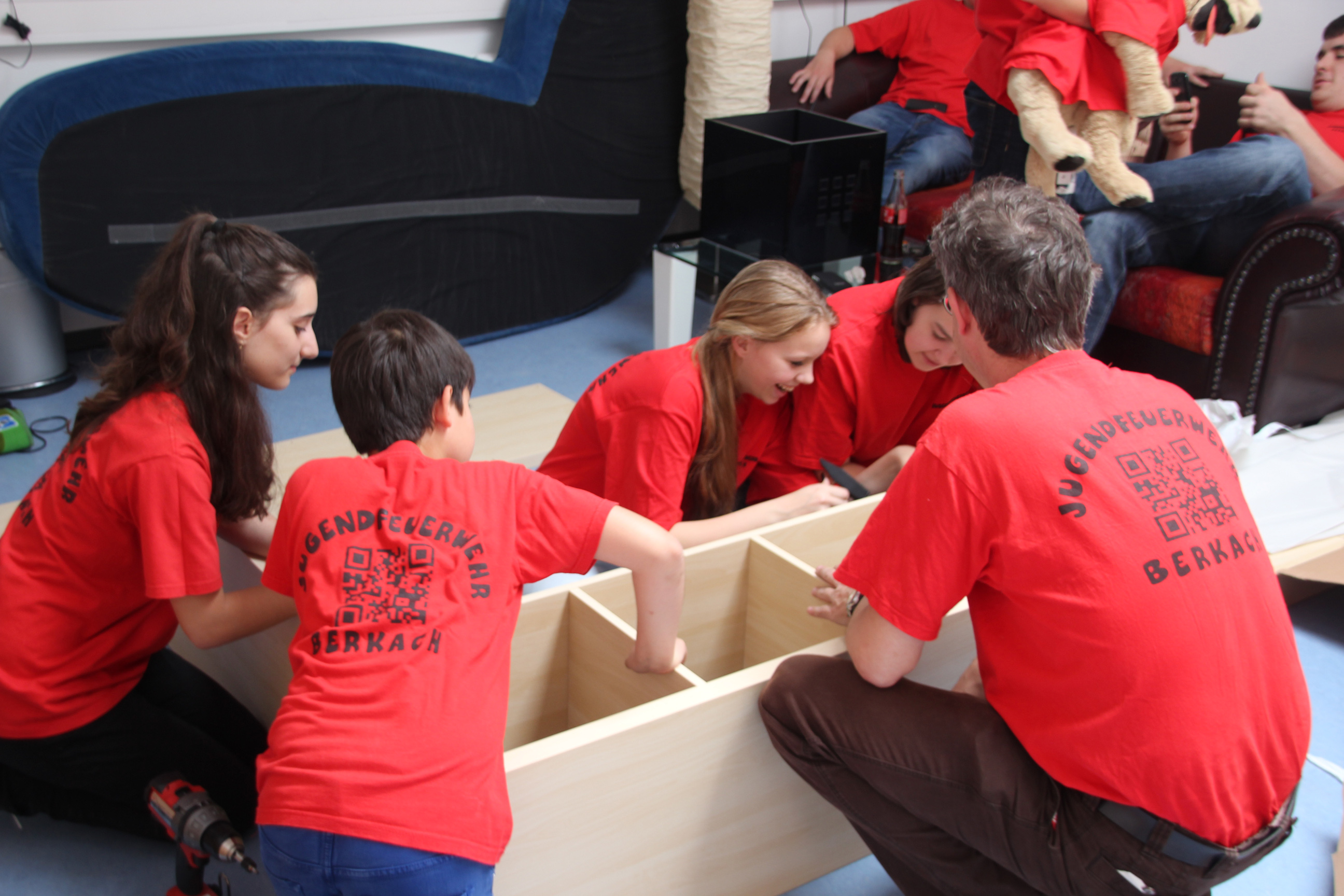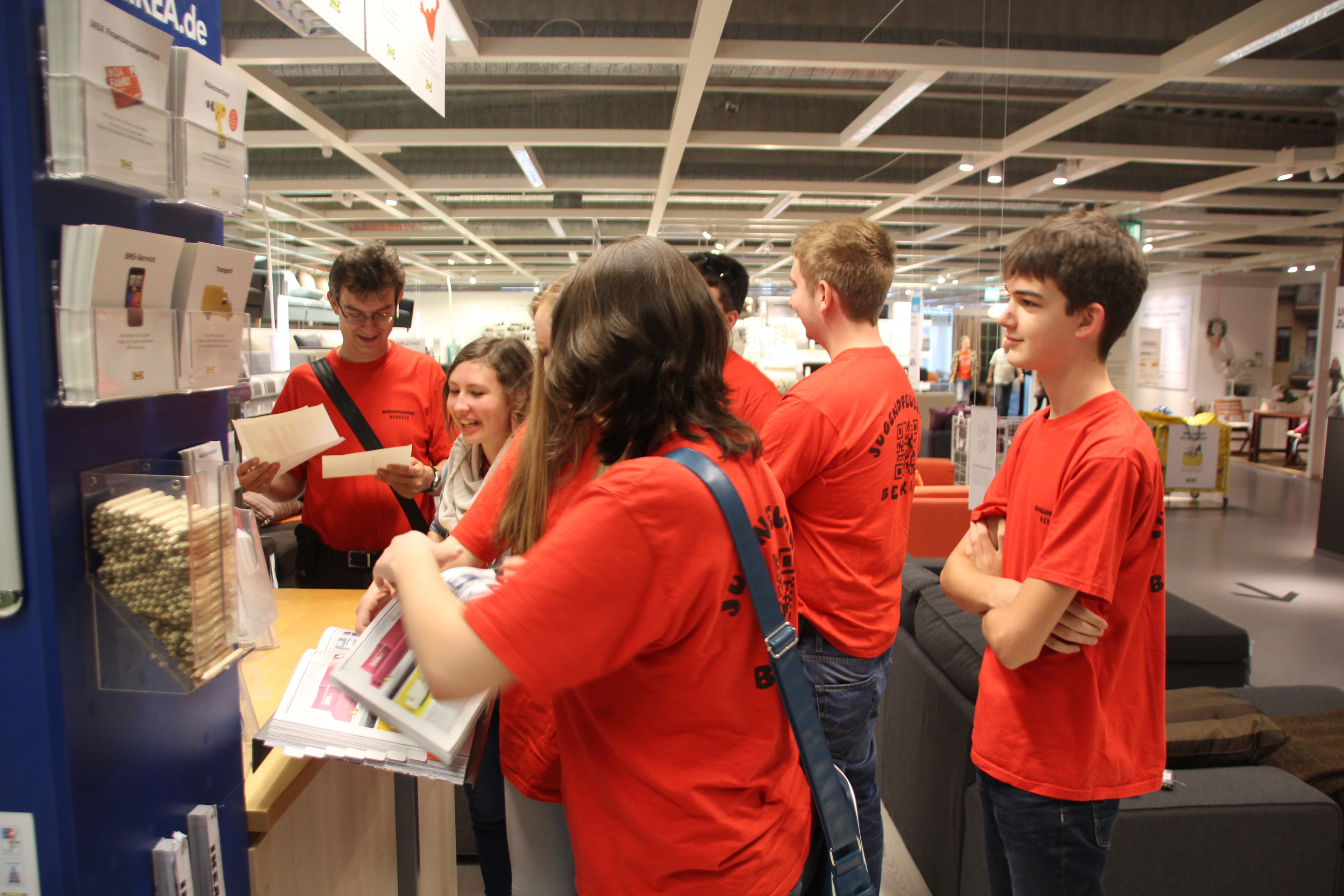 Am 25.4.2014 waren einige Jugendliche aus Berkach mit ihren Betreuern bei IKEA. Dort sollten neue Möbel für den Jugendraum gekauft werden. Da der Einkauf recht gut vorbereitet war, stand die Gruppe schon recht bald mit einem Regal, einem roten Sofa und einer Stehlampe an der Kasse. Natürlich ging es erst nach Hause, nachdem auch jeder noch einen Hot Dog bekommen hatte ... Im Jugendraum stand dann noch eine Menge Arbeit an, bis alles aufgebaut war. Aber da alle mit anpackten, ging es dann doch recht schnell und konnte sofort eingeweiht werden.