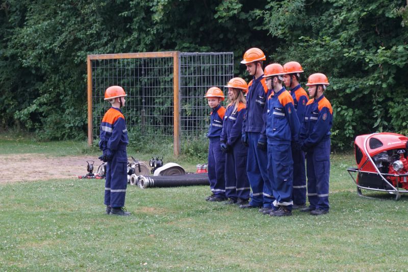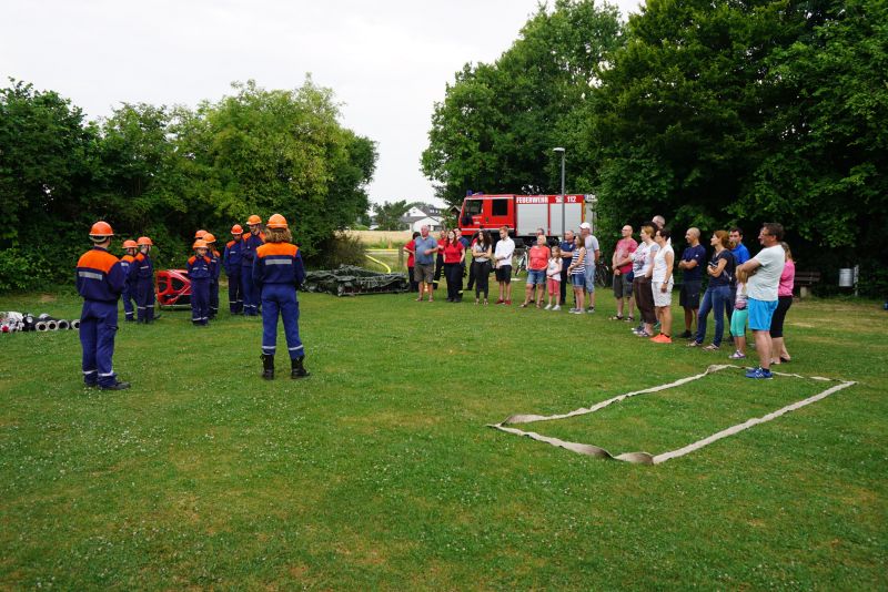 Als die Stadtmeisterschaften abgesagt wurden, waren die Berkacher Jugendlichen ein wenig enttäuscht, weil sie umsonst so viel trainiert hatten. Daher luden sie kurzerhand die Eltern zu einer Schauübung ein und konnten so doch noch zeigen, was sie gelernt hatten. Die Feuerwehrübung klappte dann auch hervorragend und konnte hinterher von den Jugendlichen und ihren Familien fröhlich bei Kuchen und Getränken besprochen werden.