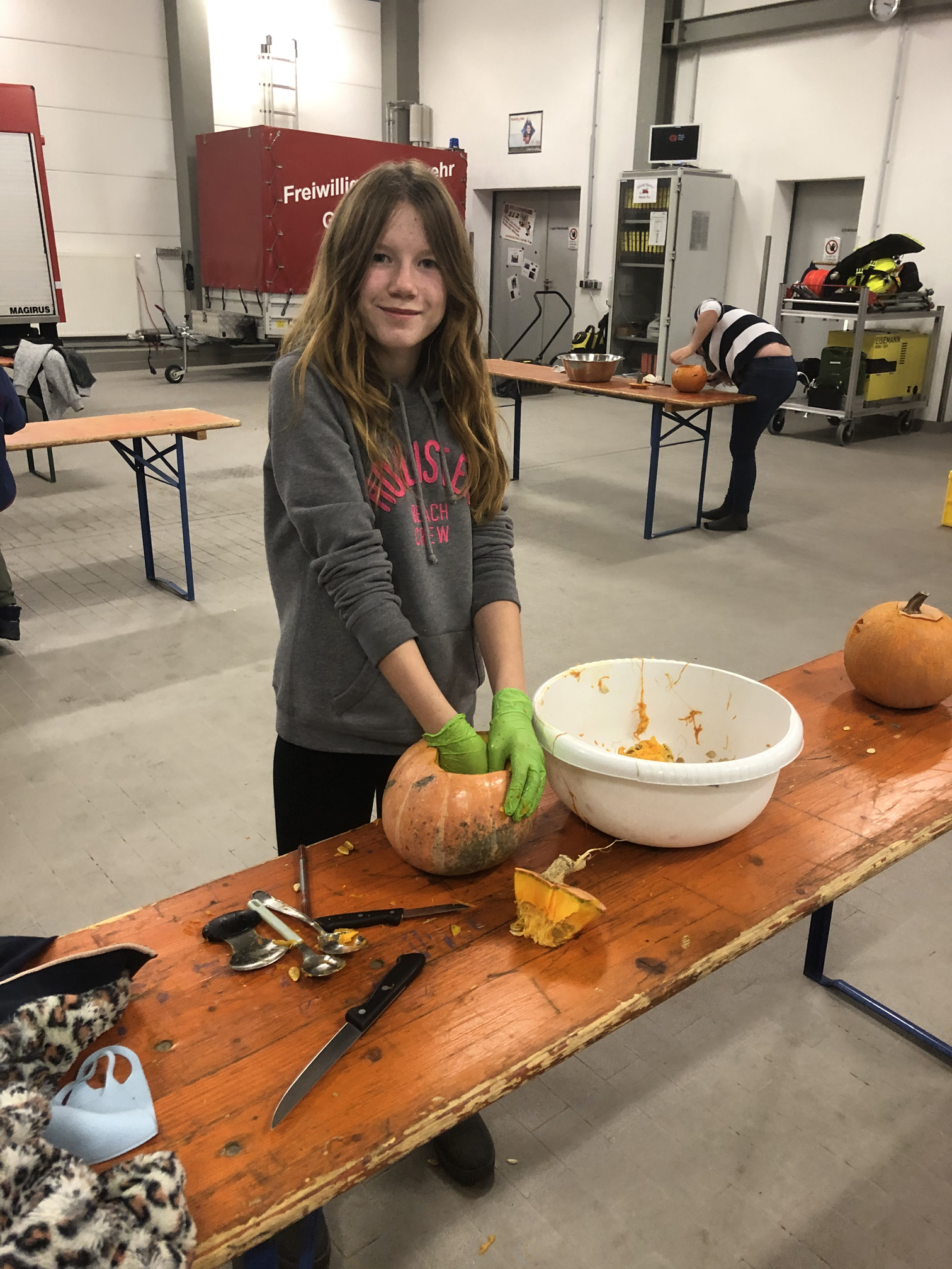 Gleich dreimal trafen sich verschiedene Gruppen der Jugendfeuerwehr, um Kürbisse für Halloween vorzubereiten. Es entstanden gruselige Gesichter, die am Ende im Dunkeln mit flackerndem Licht sehr beeindruckend aussahen.