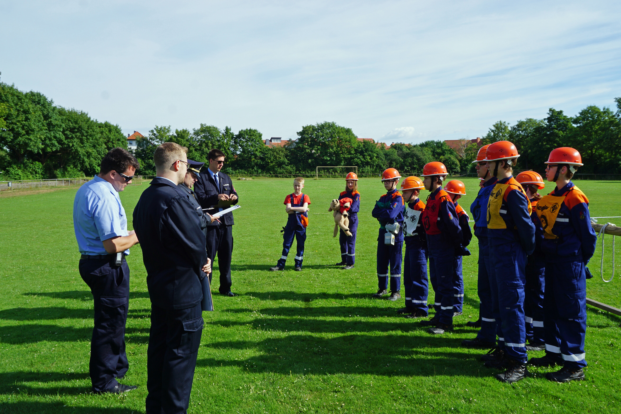 Bei strahlendem Sonnenschein hatten sich heute in Wallerstädten auf dem Sportplatz die Jugendfeuerwehren aus Groß-Gerau Kernstadt, Berkach, Dornheim und Wallerstädten versammelt, um die Stadtmeisterschaften auszutragen. Jede Mannschaft zeigte eine Wettkampfübung und absolvierte einen Staffellauf mit Feuerwehraufgaben. Beides wurde jeweils von den Schiedsrichter konzentriert beobachtet und bewertet. Als es mittags um die Siegerehrung ging, waren alle Jugendlichen sehr gespannt. Besonderen Jubel gab es dann bei der Berkacher Jugendwehr, die den ersten Platz erringen konnte. Zweite wurden die Jugendlichen aus Dornheim vor den Mannschaften aus Wallerstädten und Groß-Gerau.