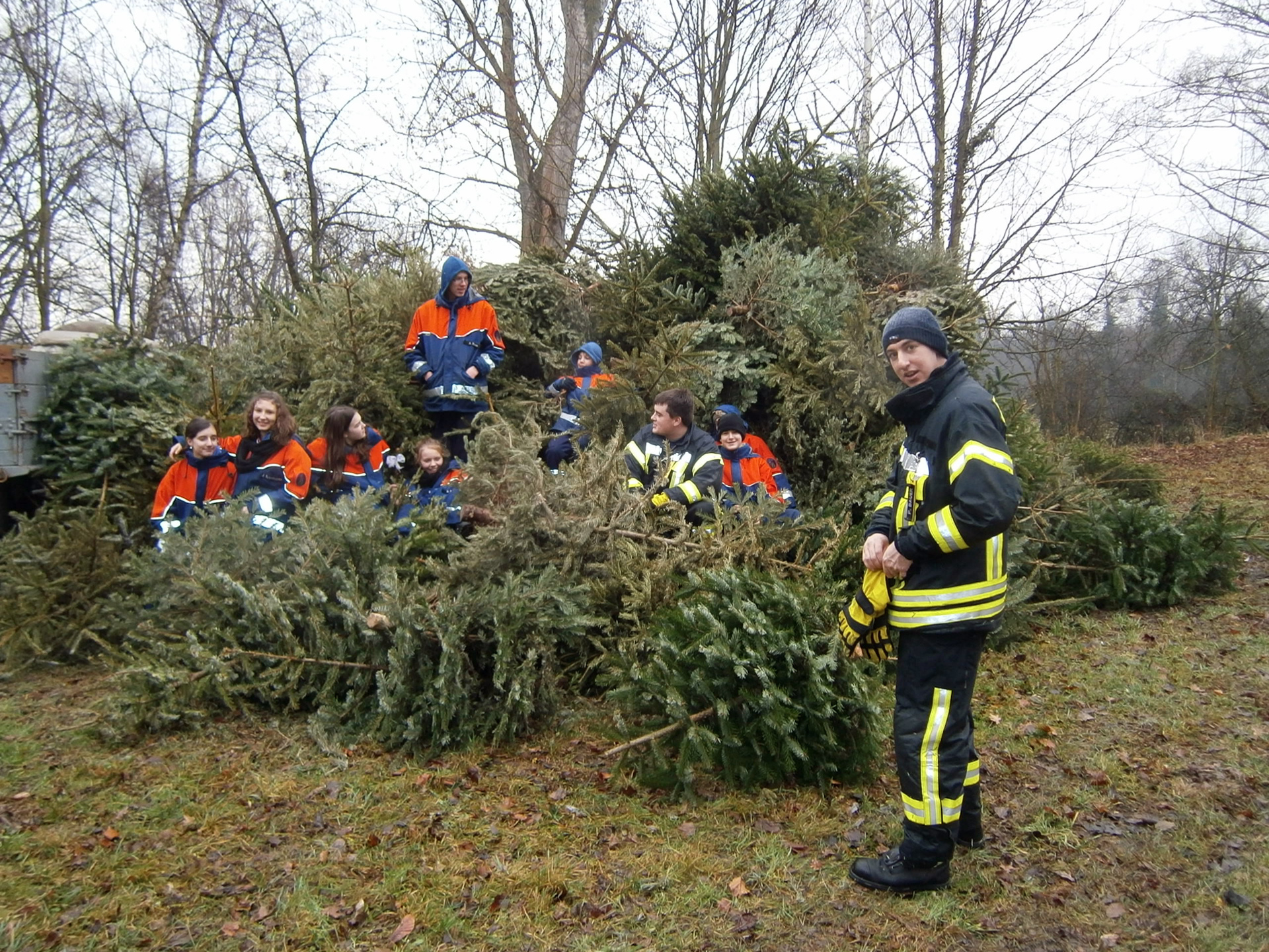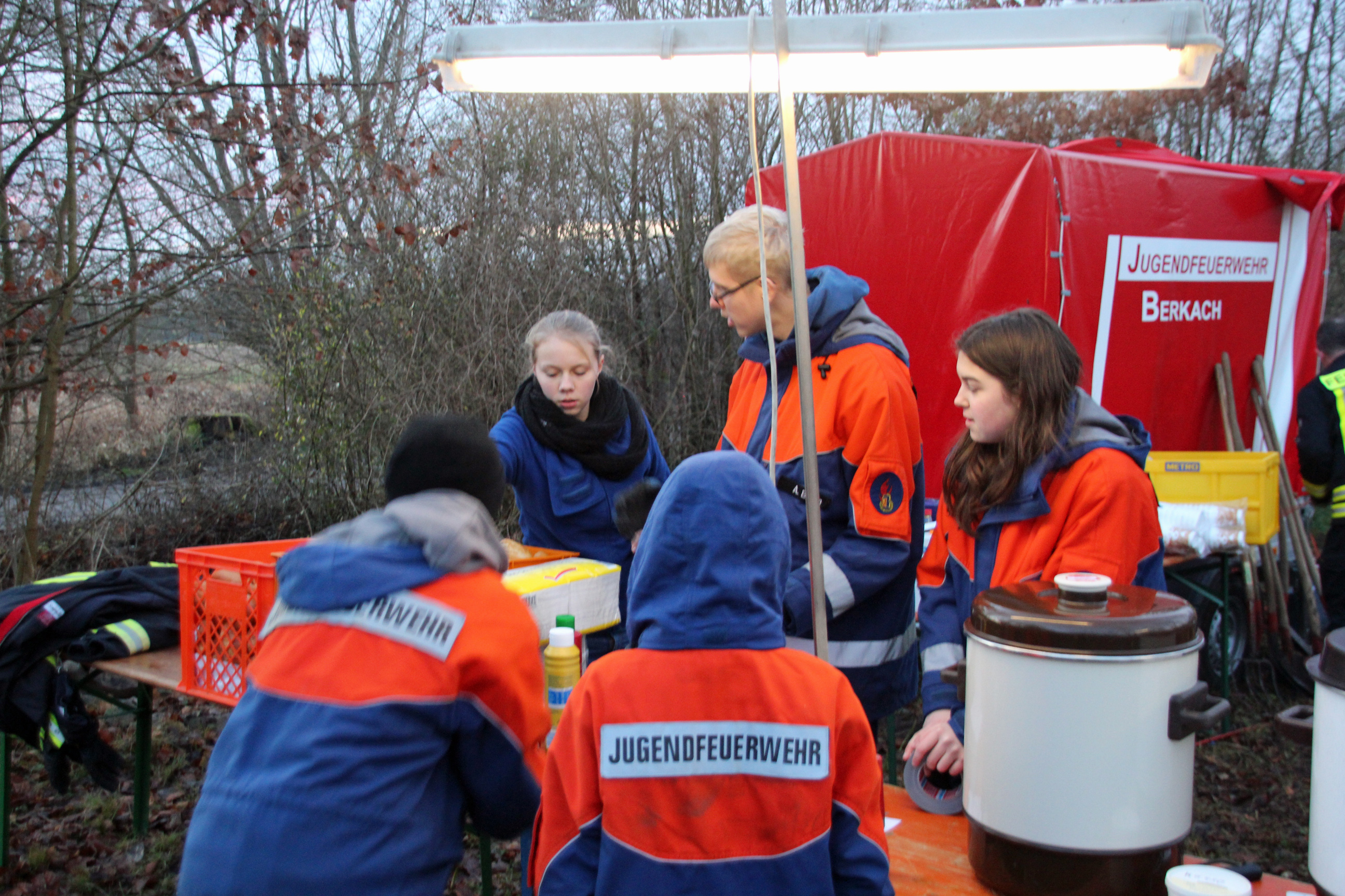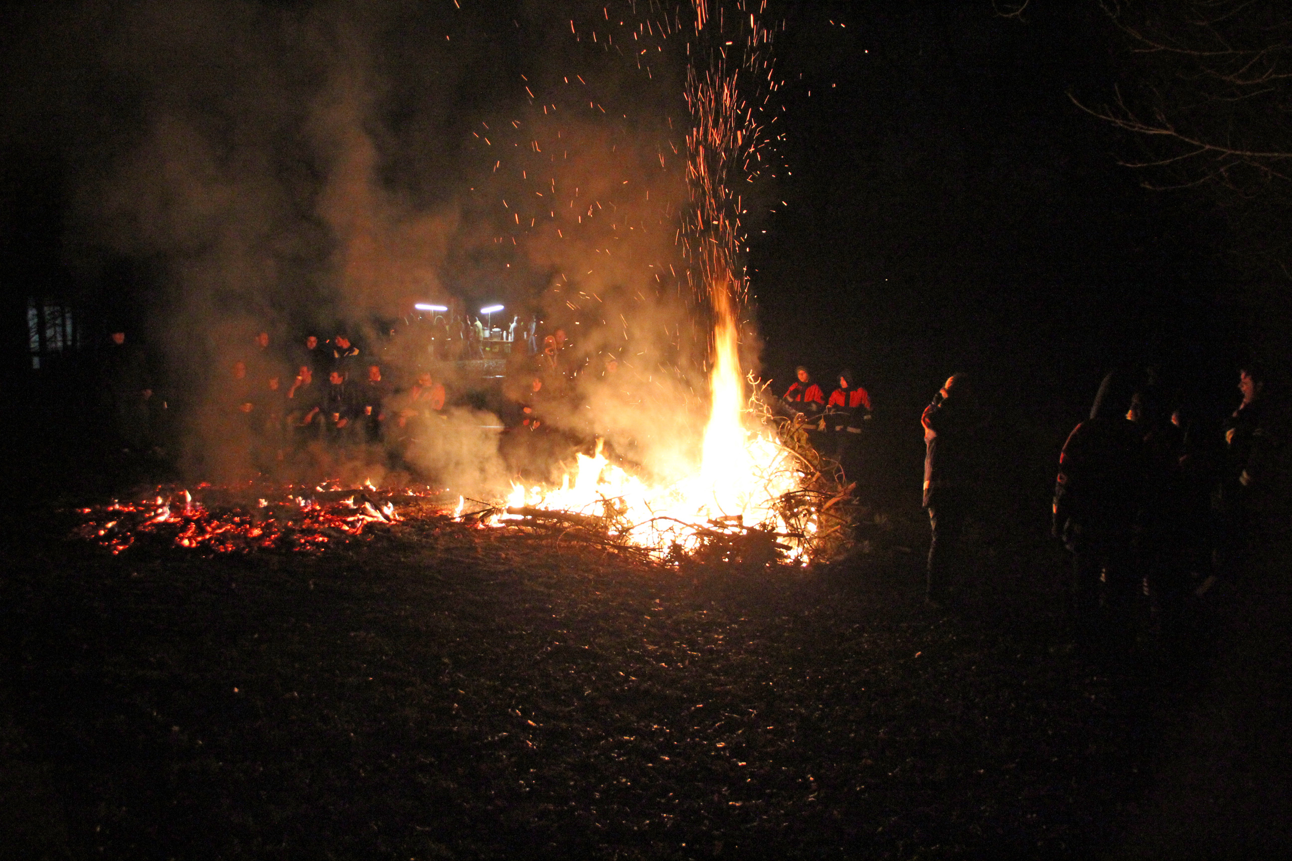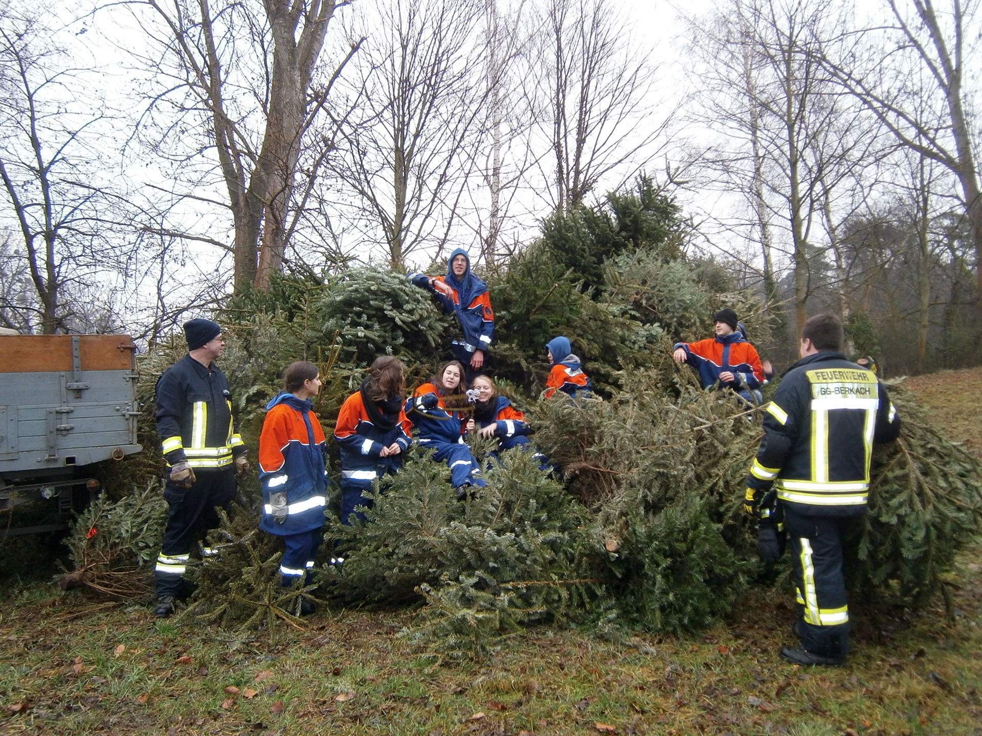Ab 9 Uhr morgens war die Jugendfeuerwehr in Berkach, in Dornberg und Auf Esch unterwegs, um die ausgedienten Weihnachtsbäume einzusammeln. Daraus wurde auf dem Berkacher Rodelberg ein stattlicher Berg gebaut. Als es kurz nach 17 Uhr dunkel geworden war, wurde das Weihnachtsbaumfeuer entzündet. Etliche Zuschauer waren gekommen, um sich dieses eindrucksvolle Ereignis anzusehen. Für das leibliche Wohl wurden Würstchen, Brezeln, Glühwein, heißer Orangensaft und kalte Getränke angeboten.