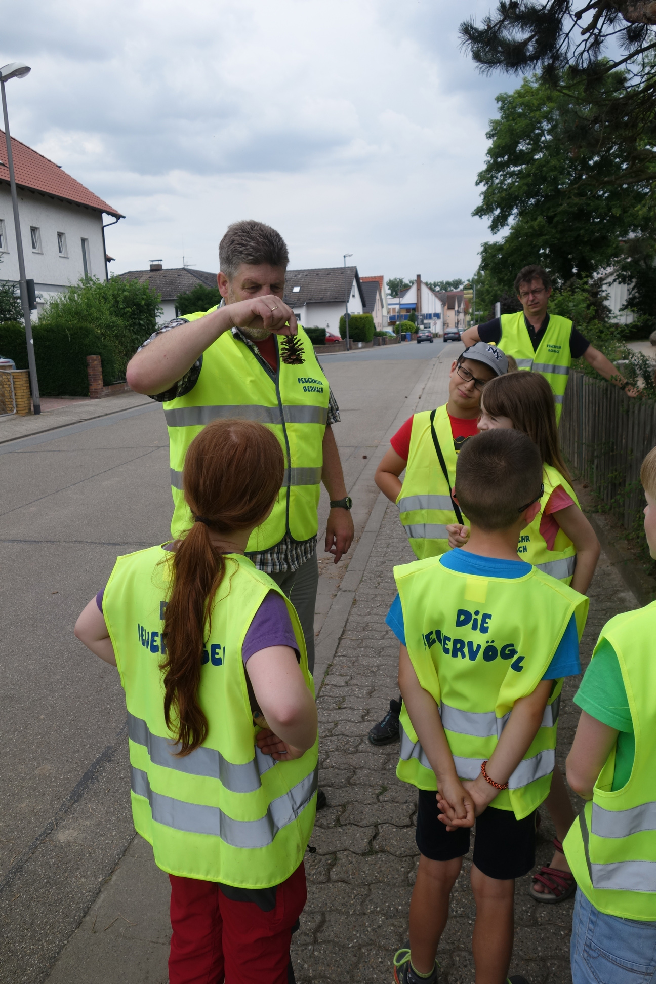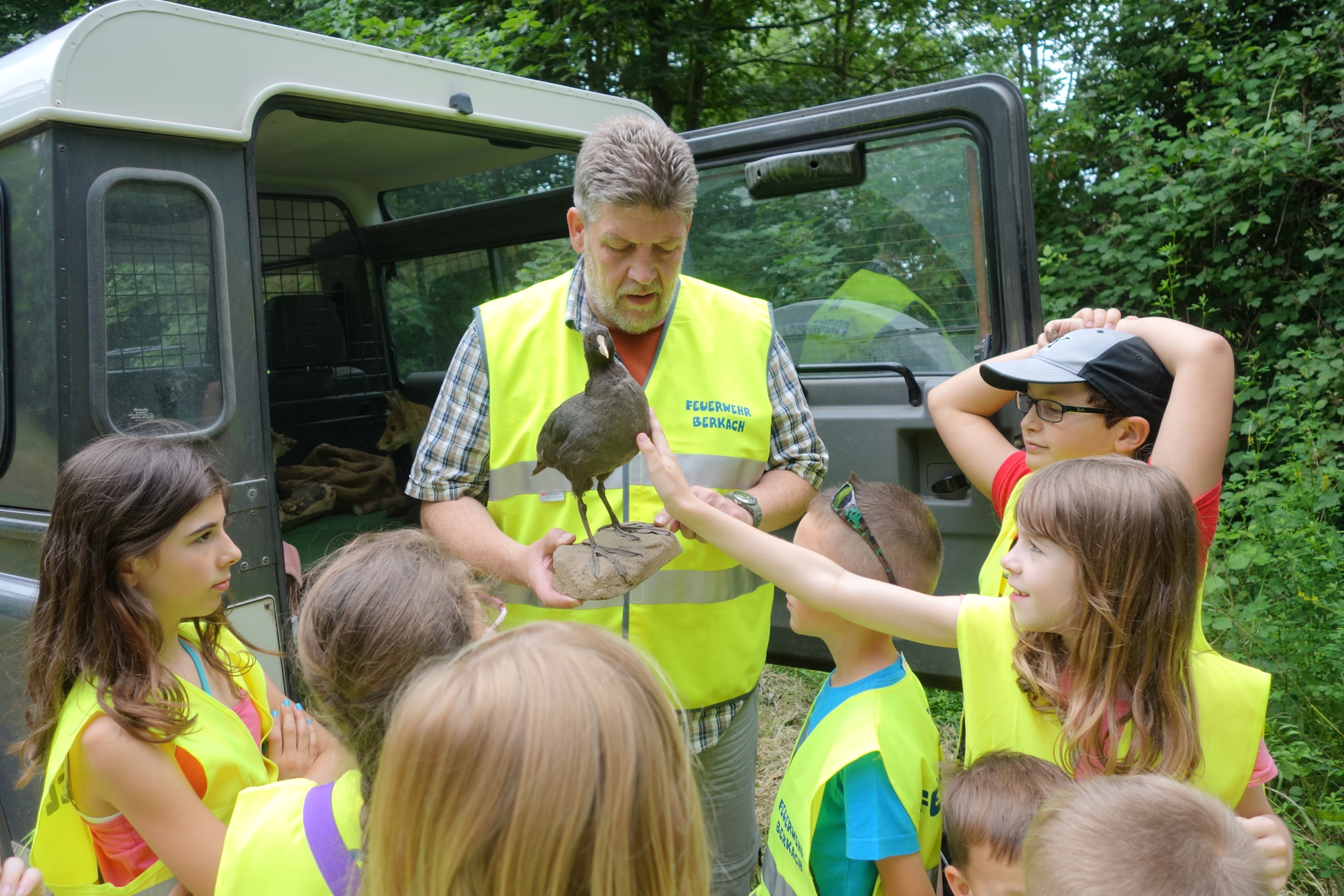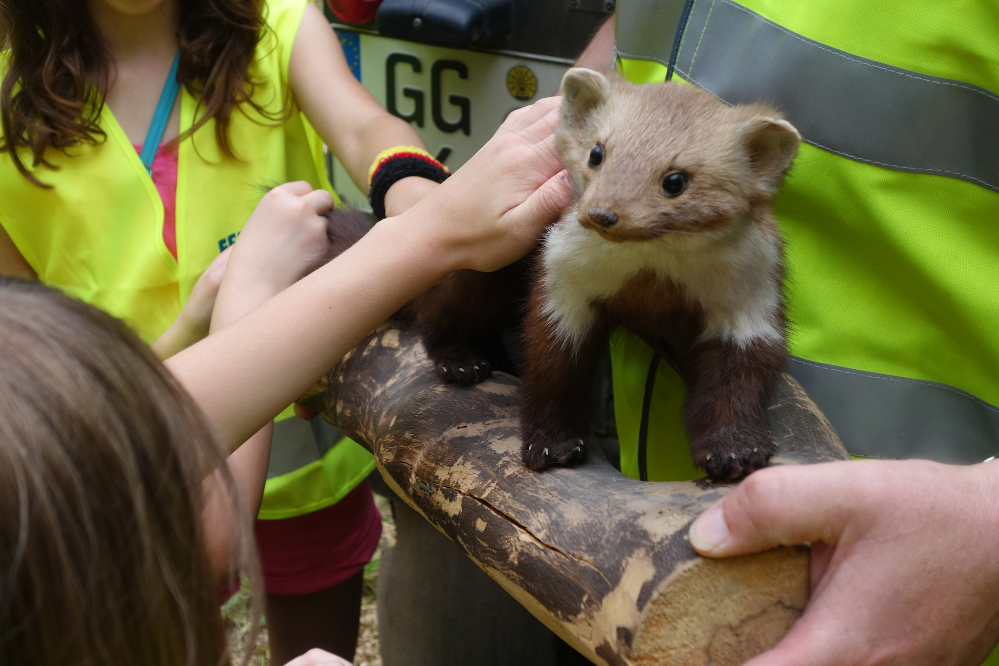 Das Wetter spielte mit, als die Feuervögel ihre Gruppenstunden im Wald verbringen wollten. Schon auf dem Weg dorthin erspähten die Kinder einige Vögel und begutachteten Kiefernzapfen. Im Wald waren die Schautafeln von Interesse. Ebenso wurden Baumrinden und ein Gänsenest begutachtet. Da uns außer einigen Vögeln und einer Spinne keine Tiere direkt über den Weg liefen, konnten die Kinder hinterher einige Tierpräparate anschauen und streicheln.