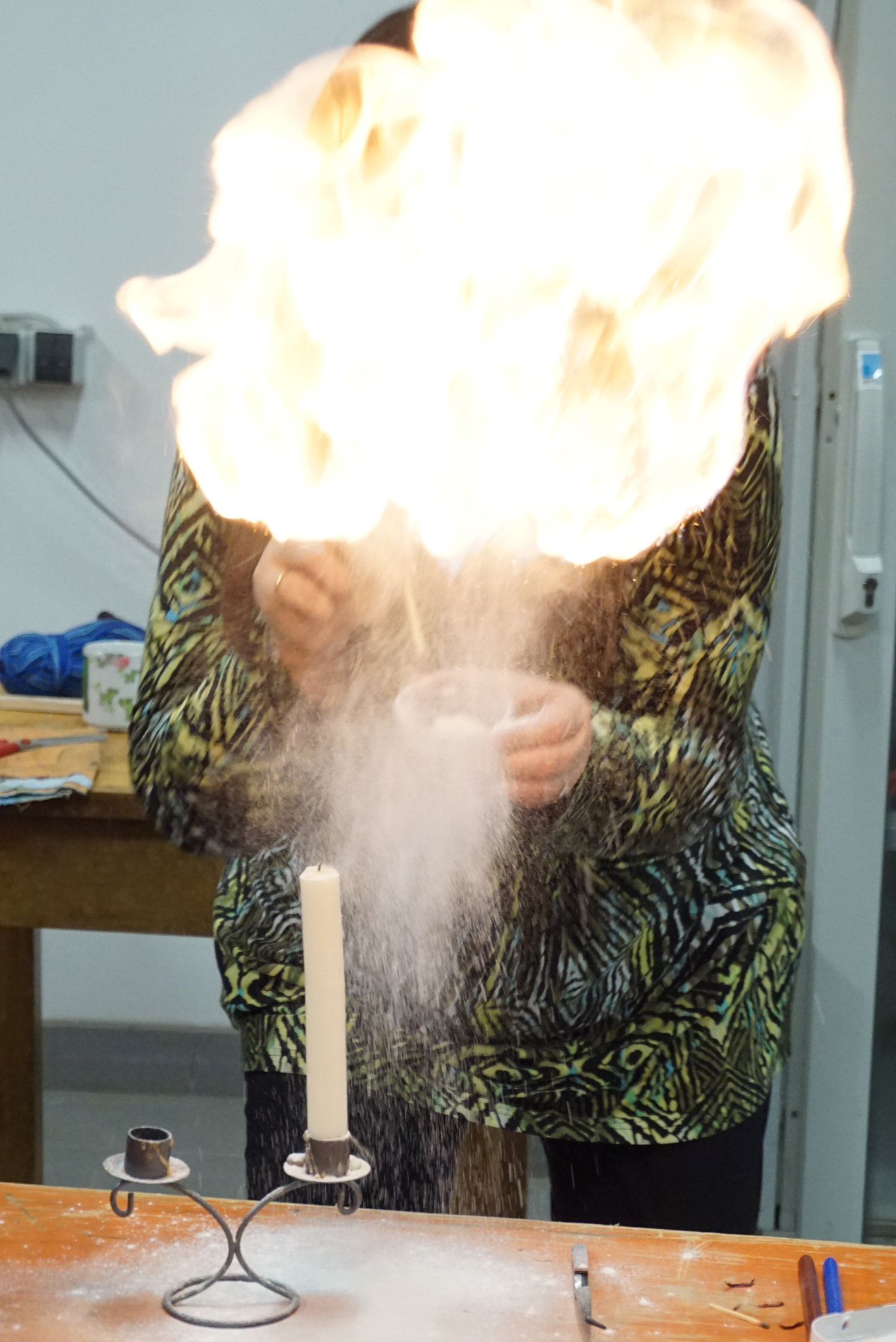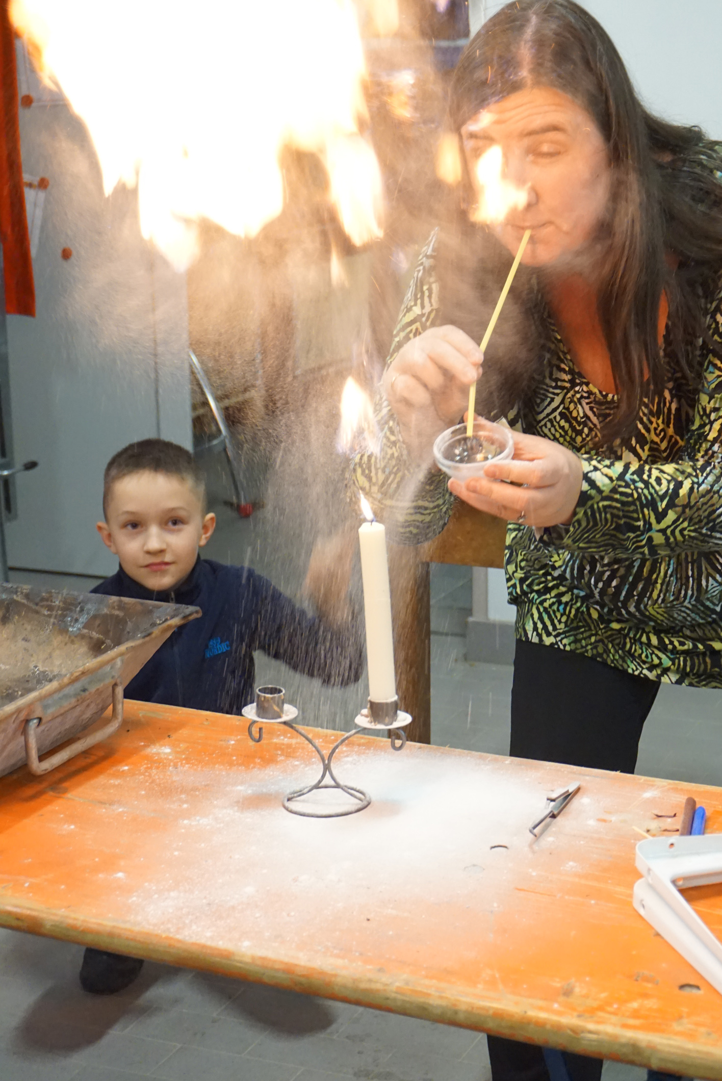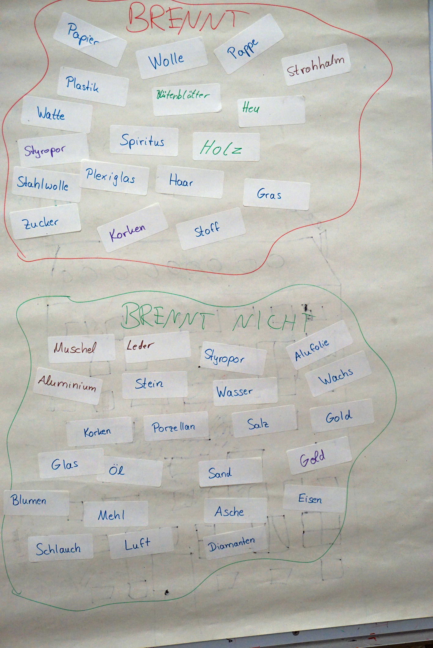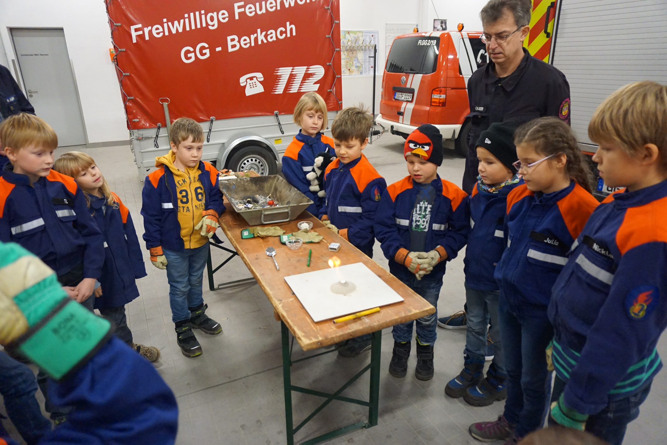 Heute wollten es die Feuervögel genau wissen: Welche Materialien brennen und welche nicht? Das mussten wir natürlich in der Praxis ausprobieren, und so roch es in der Fahrzeughalle recht schnell etwas angekokelt. Aber die Feuervögel können natürlich gut mit Feuer umgehen und zeigten sich mit Pinzette und Handschuhen sehr umsichtig.