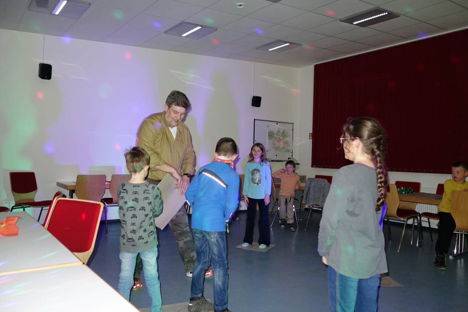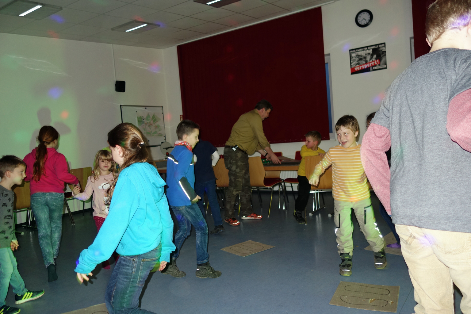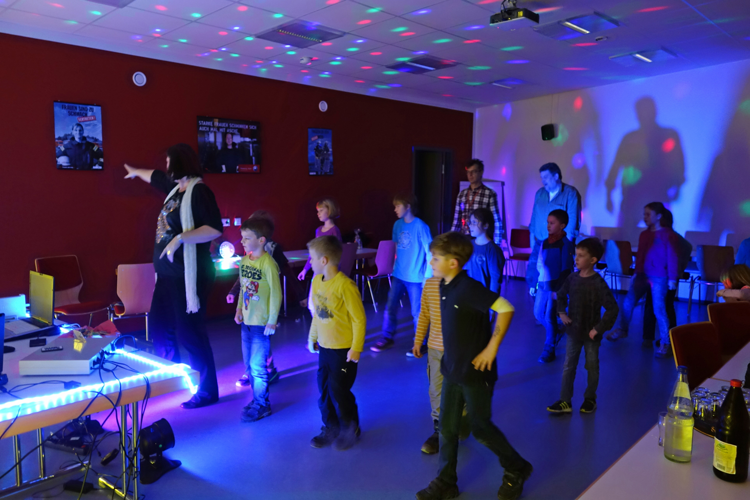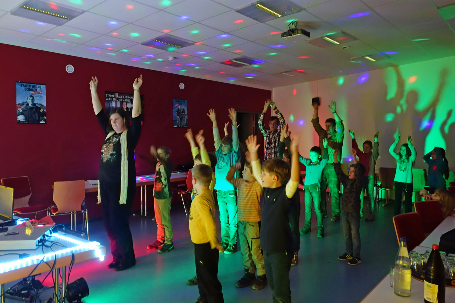 Die Weihnachtsfeier der Feuervögel begann dieses Mal sehr besinnlich, als Julia auf der Geige "Morgen kommt der Weihnachtsmann" spielte. Danach kam unser Feuervogel DJ Til ins Spiel. Er verwandelte den Schulungsraum mit professioneller Sound- und Lichtanlage in eine Disco. Zunächst machten wir uns mit Polonaise und Modetanz warm, und dann konnten sich alle beim Inselhüpfen und Stopptanz so richtig verausgaben. Til traf dabei immer die richtige Musik und sorgte für die echte Partyatmosphäre.