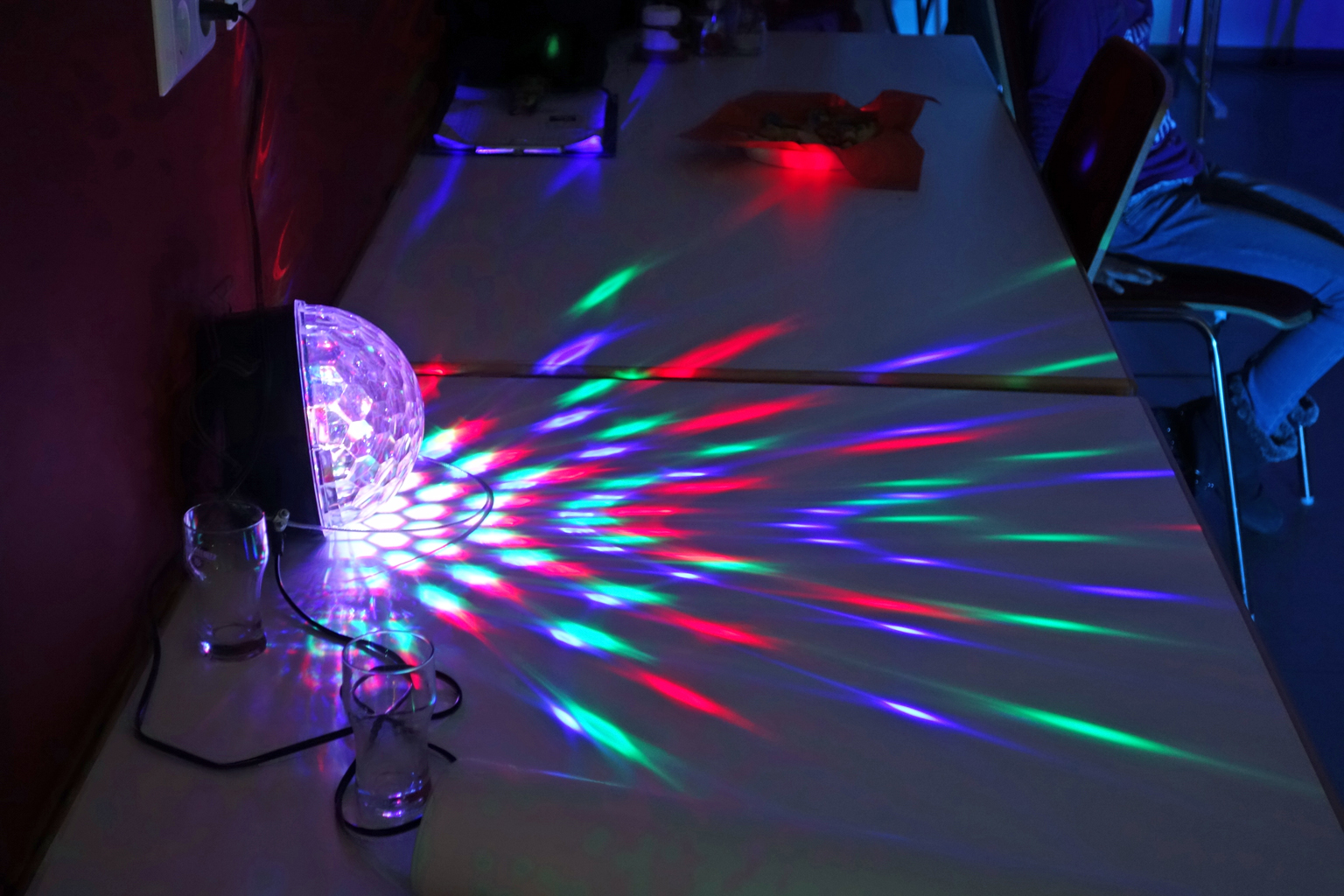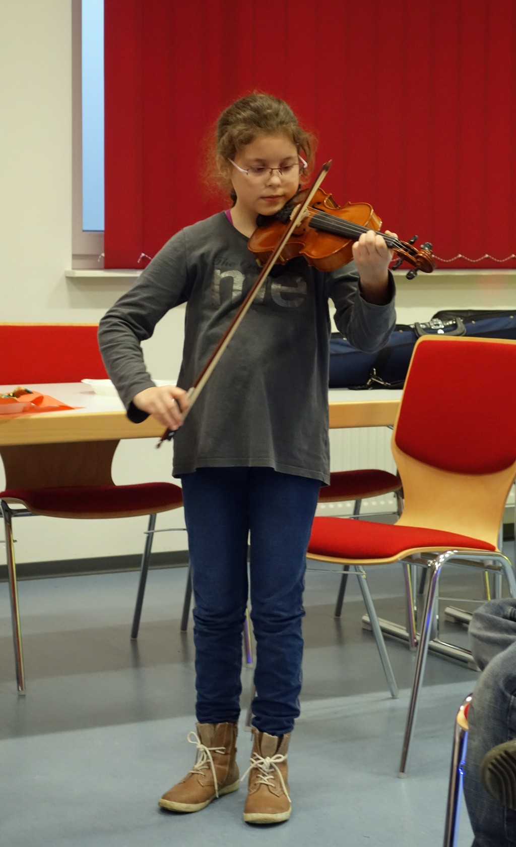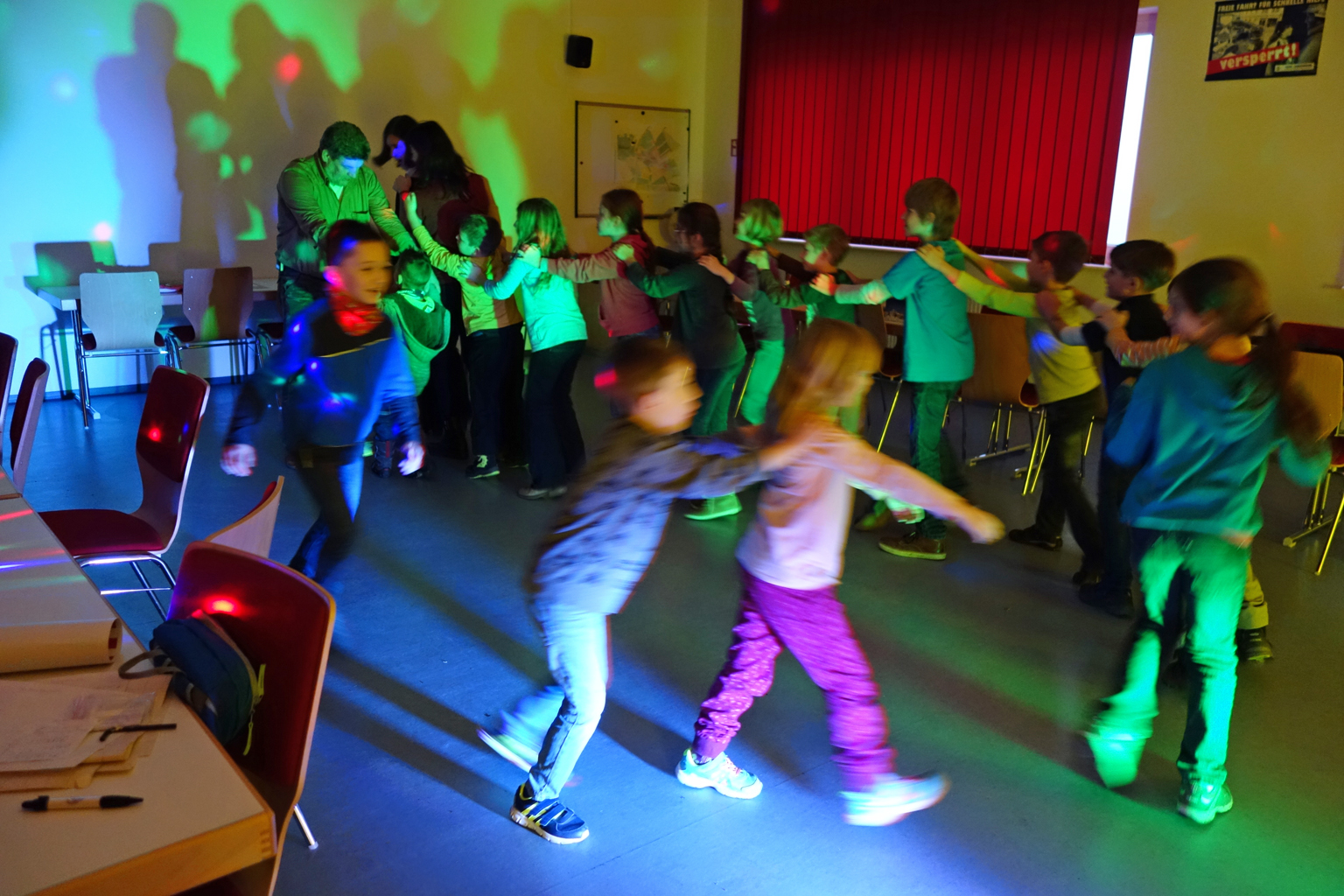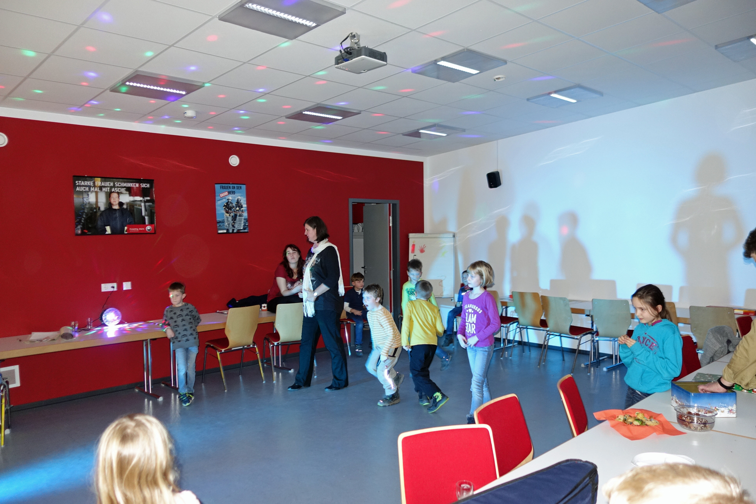 Die Weihnachtsfeier der Feuervögel begann dieses Mal sehr besinnlich, als Julia auf der Geige "Morgen kommt der Weihnachtsmann" spielte. Danach kam unser Feuervogel DJ Til ins Spiel. Er verwandelte den Schulungsraum mit professioneller Sound- und Lichtanlage in eine Disco. Zunächst machten wir uns mit Polonaise und Modetanz warm, und dann konnten sich alle beim Inselhüpfen und Stopptanz so richtig verausgaben. Til traf dabei immer die richtige Musik und sorgte für die echte Partyatmosphäre.