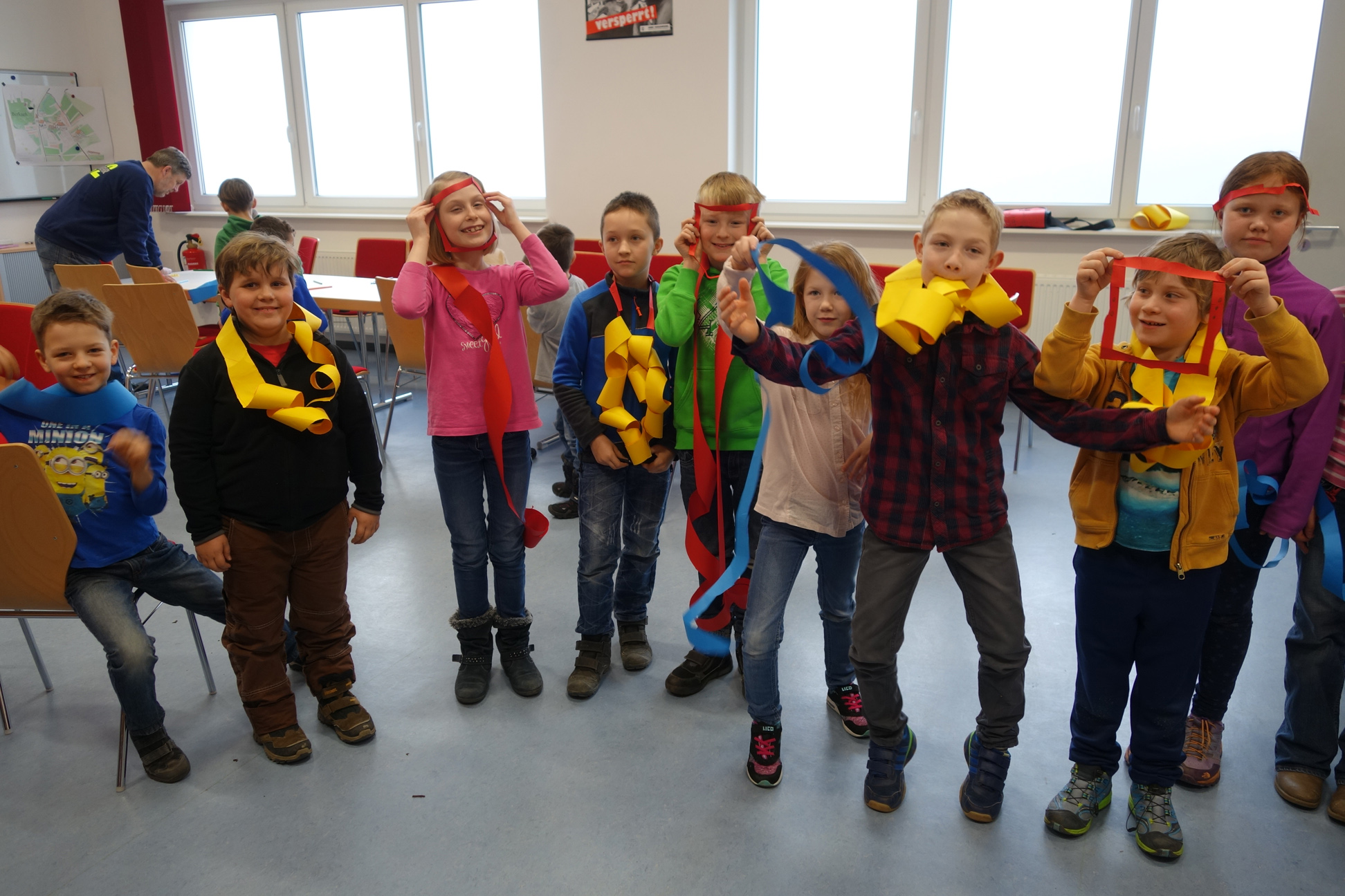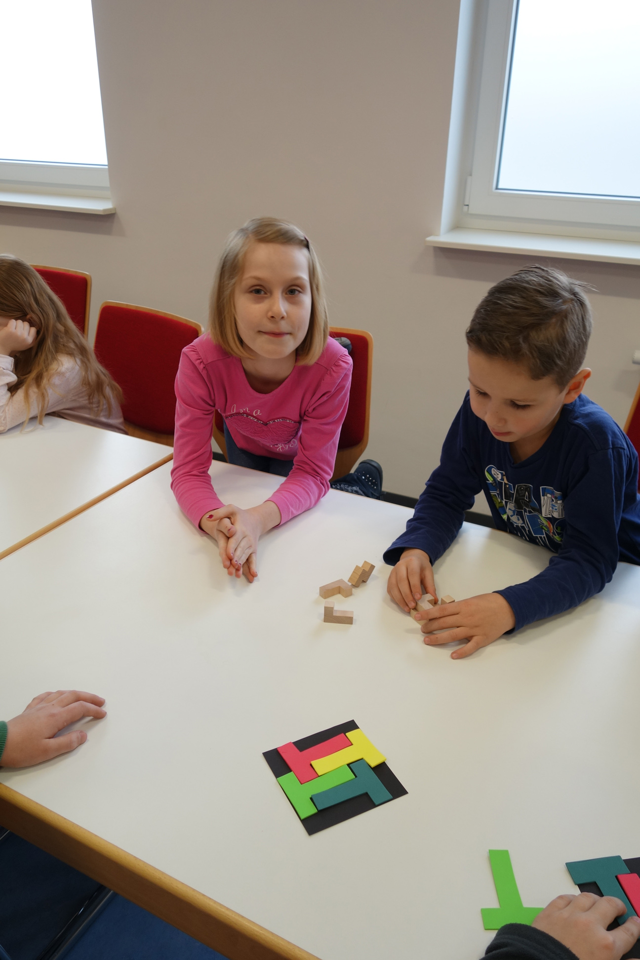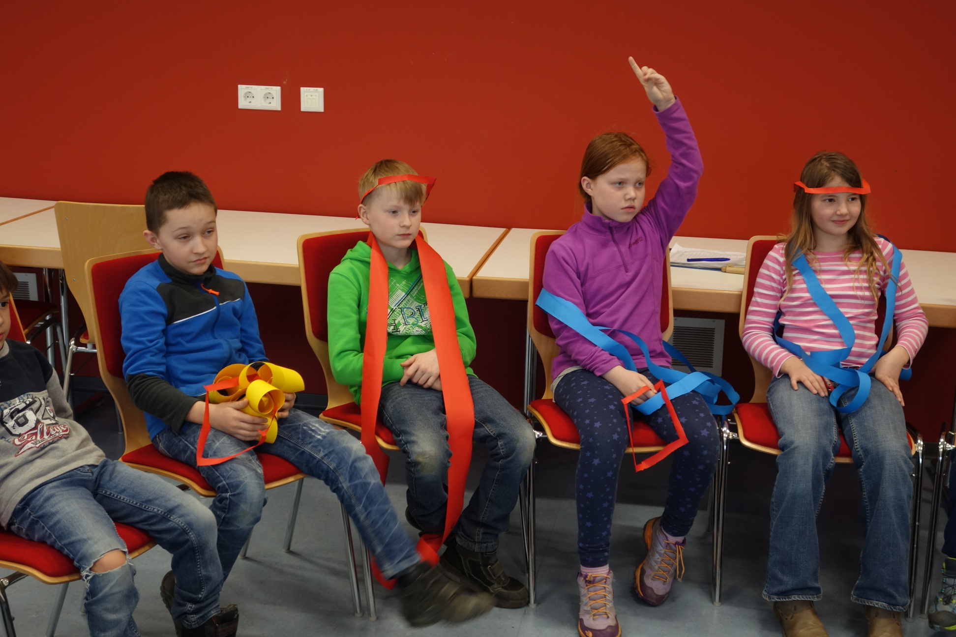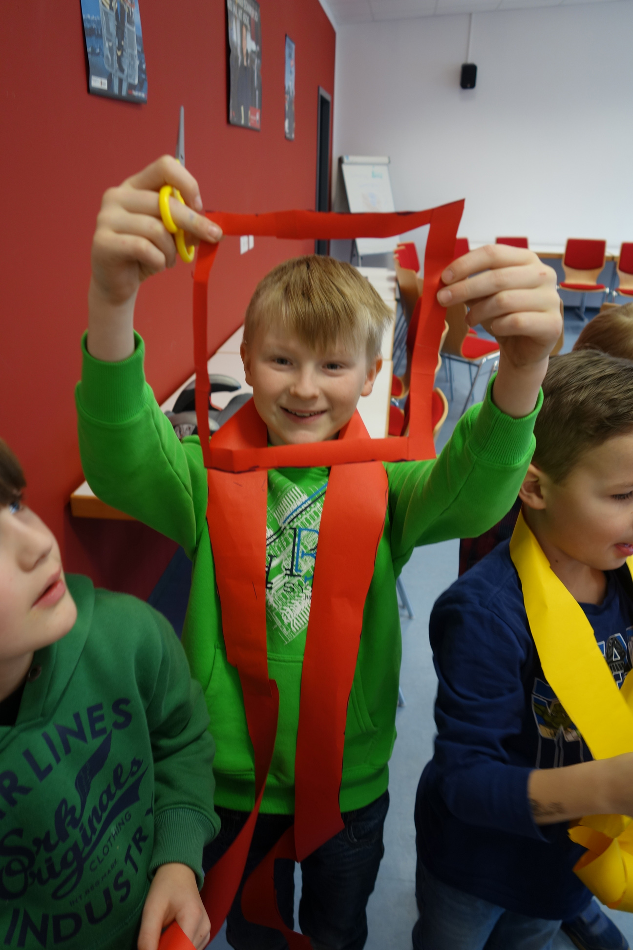 Der Feuerlöscher wäre gleich griffbereit gewesen, falls die Köpfe zu arg geraucht hätten. Aber die Kinder lösten alle Aufgaben dann doch ohne Feueralarm. So wurden Elemente in Kästchen eingepasst, lange Bänder geteilt und Holzteile fast mit Zauberkraft bewegt. Am Schluss waren alle Geheimnisse gelüftet, die Kinder mit Papier bunt geschmückt, und Simone konnte sogar noch zwei Herzen zum Abschluss zaubern.