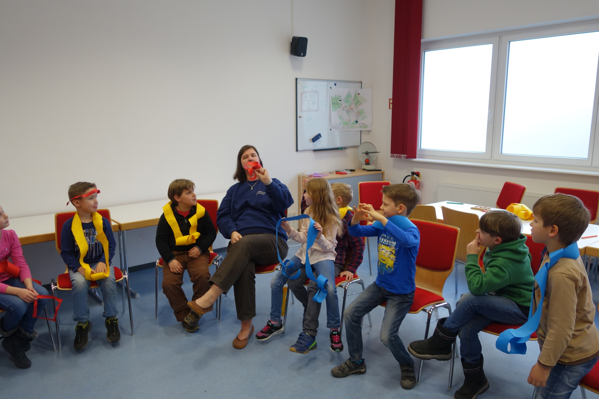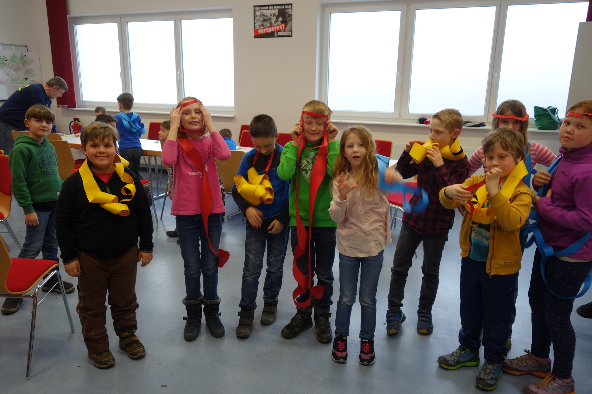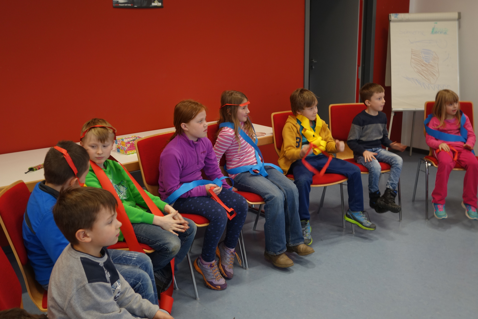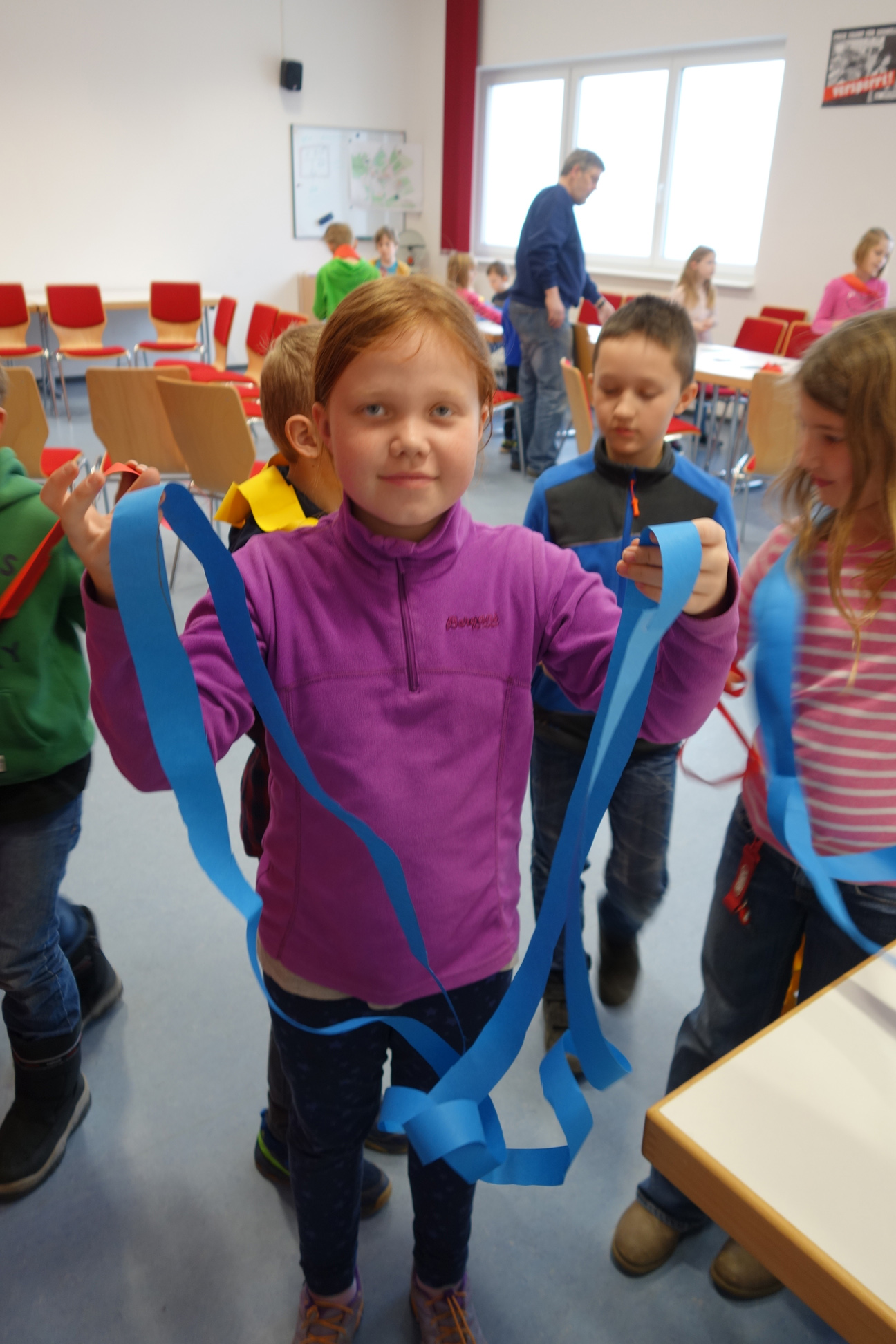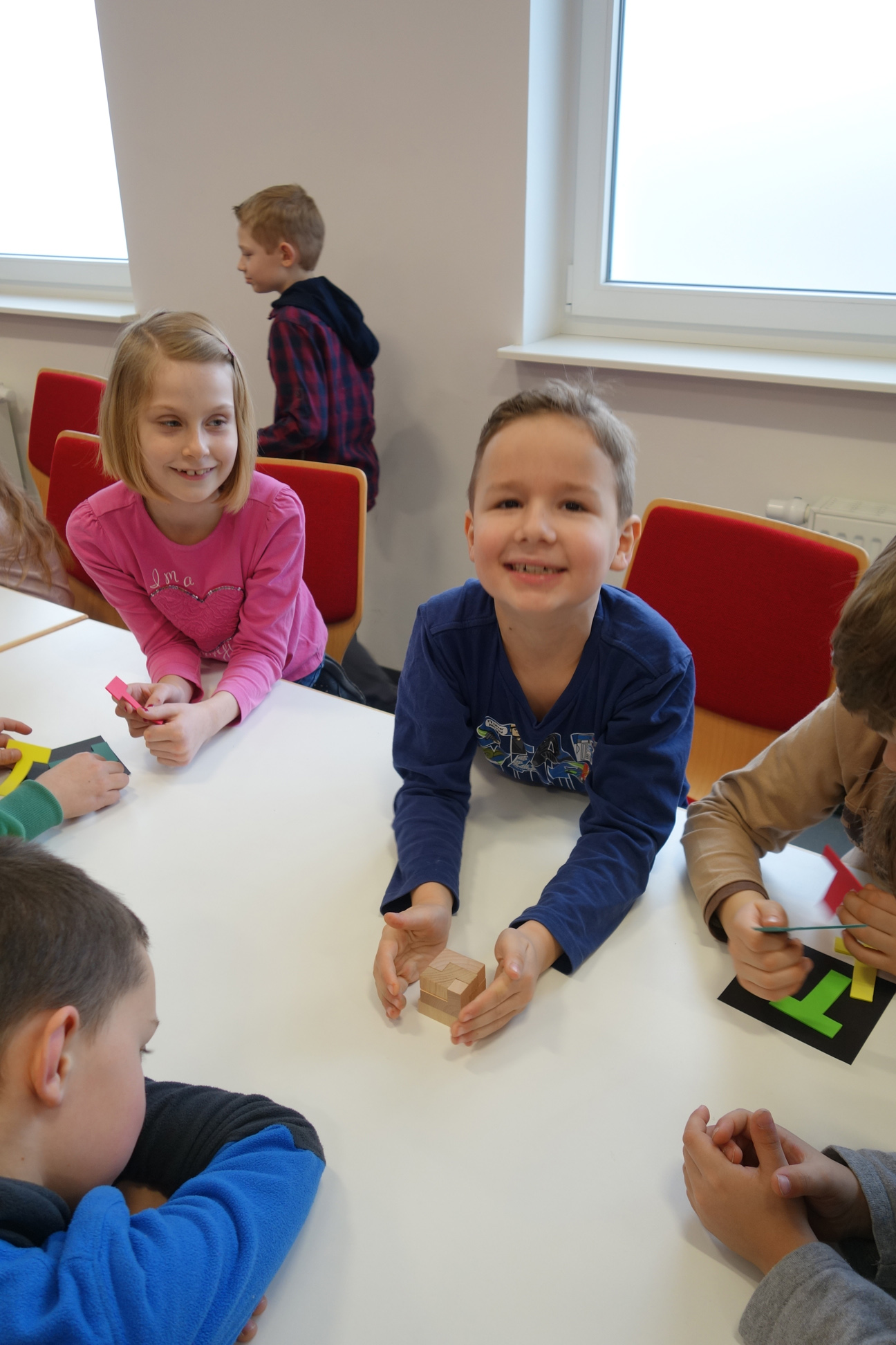 Der Feuerlöscher wäre gleich griffbereit gewesen, falls die Köpfe zu arg geraucht hätten. Aber die Kinder lösten alle Aufgaben dann doch ohne Feueralarm. So wurden Elemente in Kästchen eingepasst, lange Bänder geteilt und Holzteile fast mit Zauberkraft bewegt. Am Schluss waren alle Geheimnisse gelüftet, die Kinder mit Papier bunt geschmückt, und Simone konnte sogar noch zwei Herzen zum Abschluss zaubern.