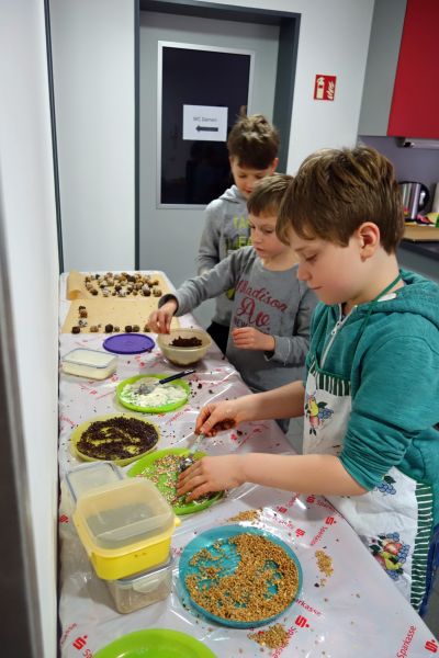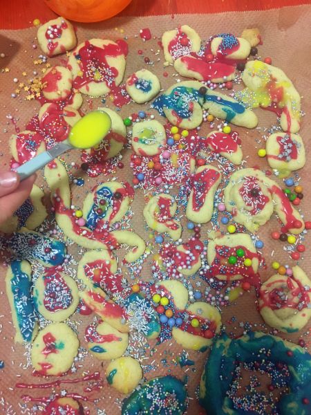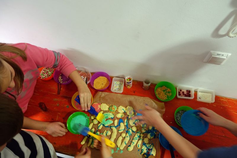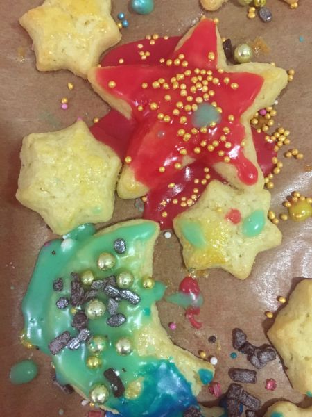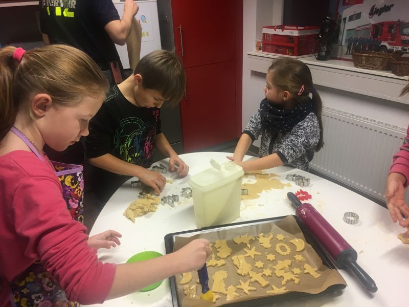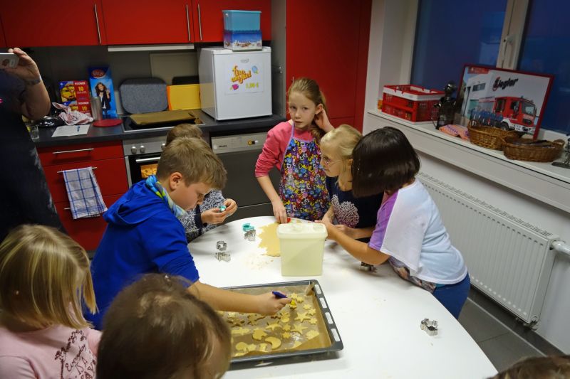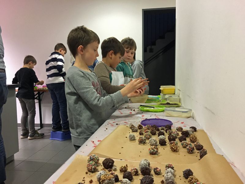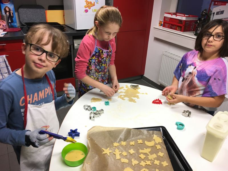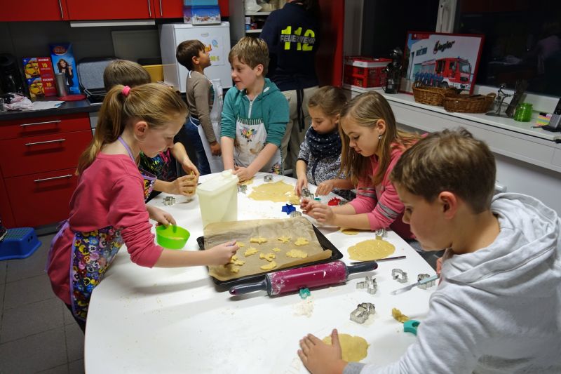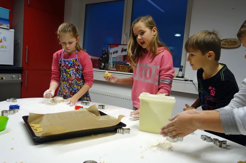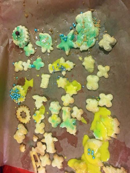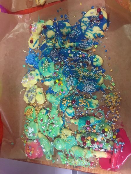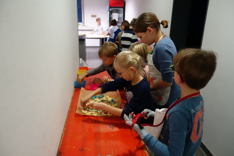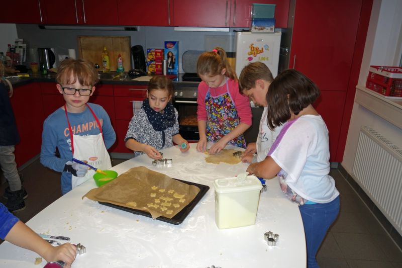 Drei Teigklumpen, achtzehn Kinder, eine mittelgroße Küche und ca. 20 Schüsselchen mit Verziermaterial - konnte das gutgehen? Es ging gut, und die Resultate waren zahlreich, süß, bunt und unter einen dicken Zuckergussschicht vergraben.