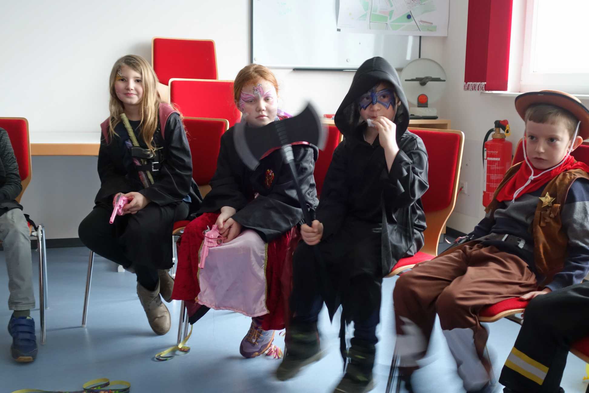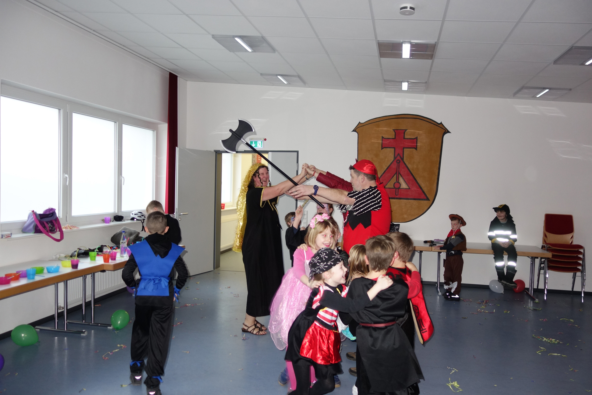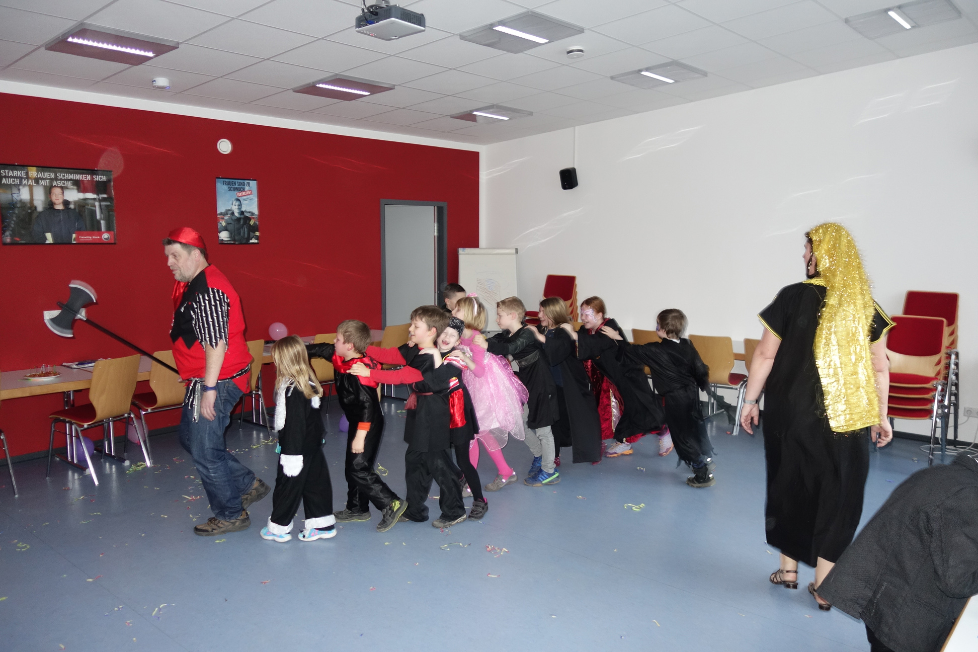 Diesmal tanzten Ninjas, Ritter, Blumenmädchen, Agenten und viele waffenbewehrte Kämpfer durchs Gerätehaus. Bei den Spielen wurden Schokoküsse verputzt und Verkleidungen ergänzt.