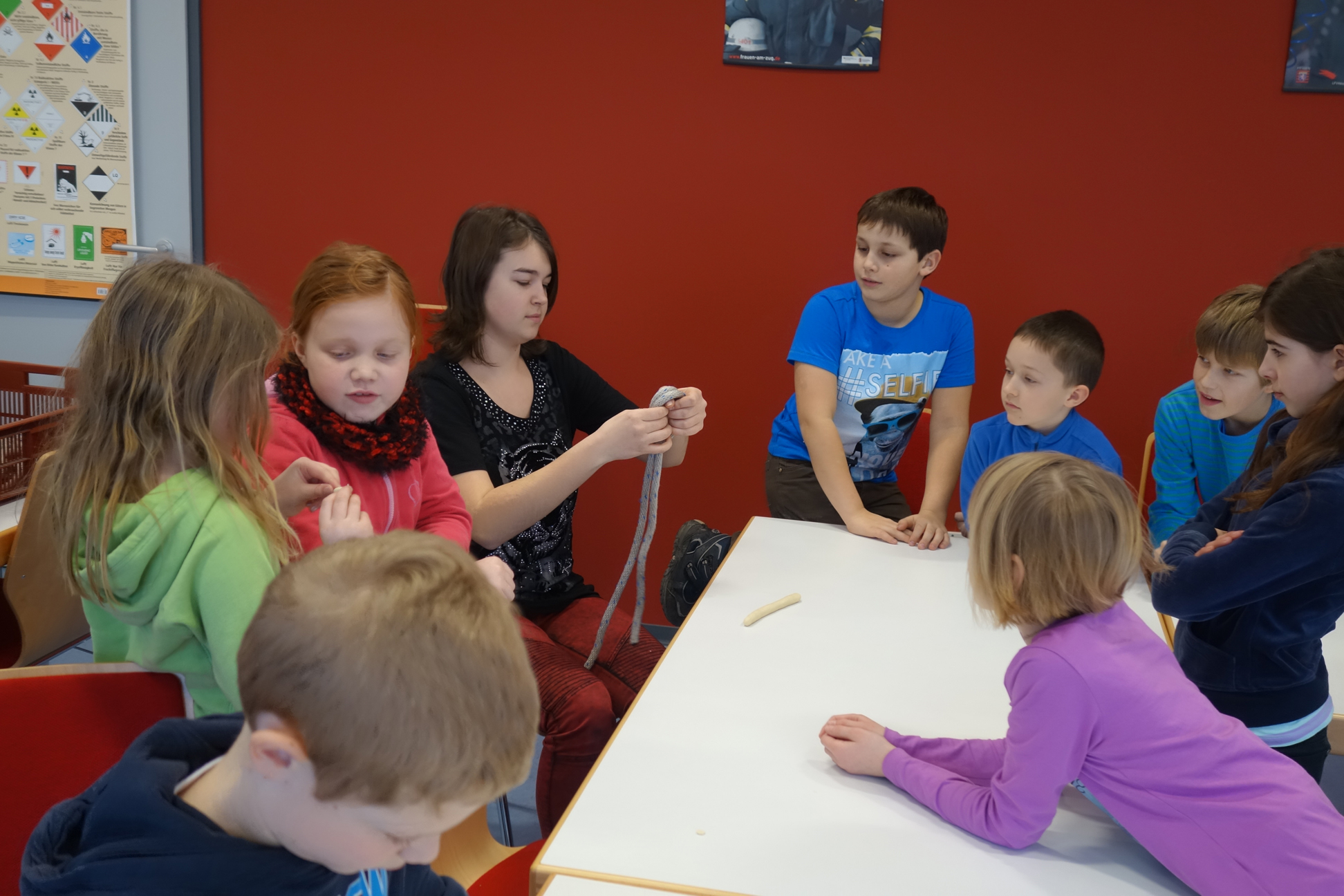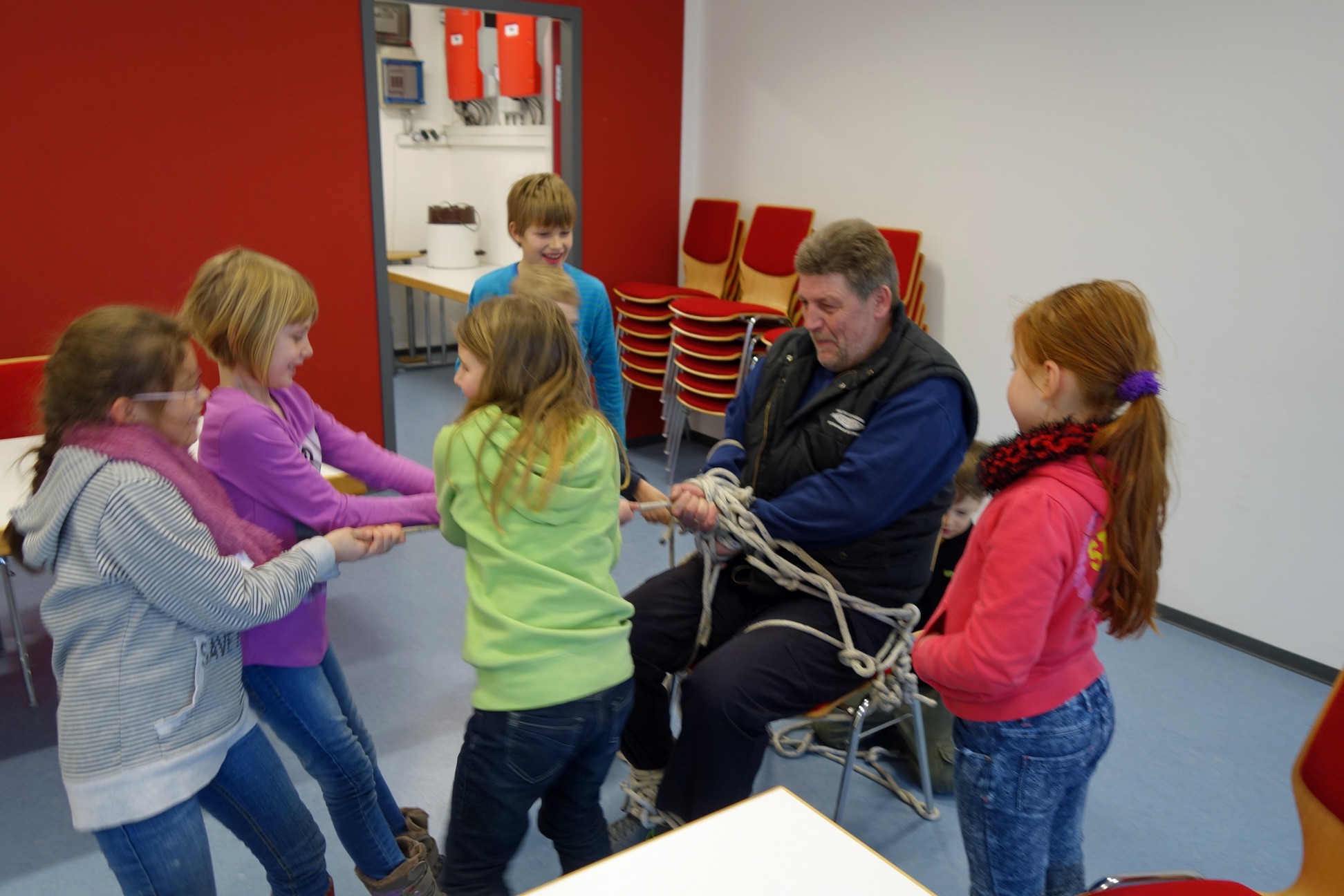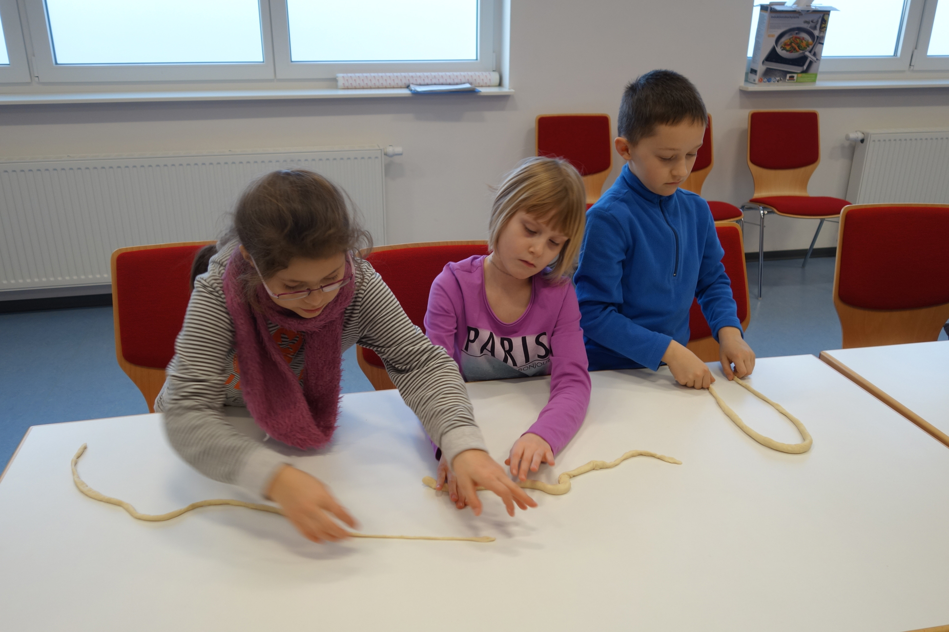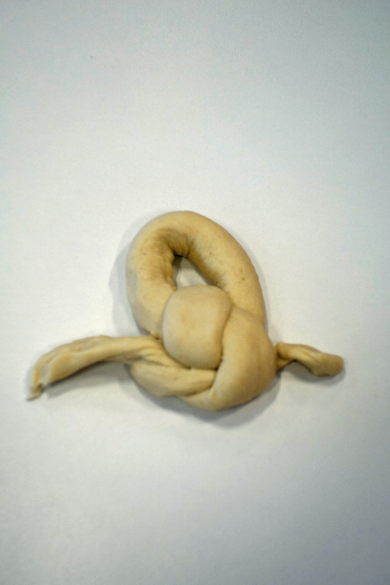 Es macht Spaß, Knoten zu üben. Aber es macht noch mehr Spaß, die Knoten hinterher zu essen. Daher legten und stachen wir aus Hefeteig Achterknoten, doppelte Ankerstiche und Kreuzknoten, die hinterher in Lauge getunkt und gebacken wurden. Nicht alle Ergebnisse waren offizielle Feuerwehrknoten, aber sehen lassen konnten sich alle Backwerke.